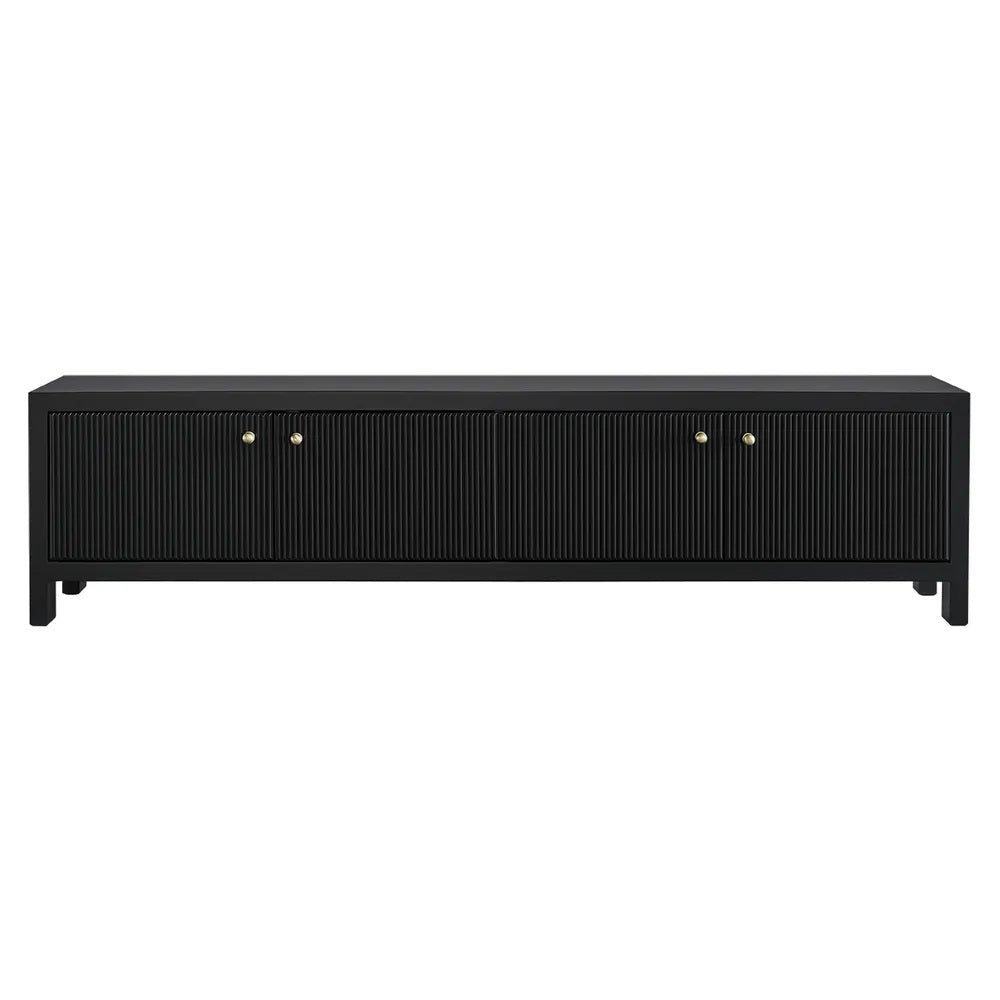 Bringing depth and sophistication to your living space, the Adele large black Entertainment Unit balances refined elegance with practical design. Featuring four doors adorned with fluted detailing and brushed gold handles, it offers a harmonious blend of texture and luxury. The bold black finish amplifies its fresh, modern character, making it an ideal statement piece for both contemporary and classic interiors.