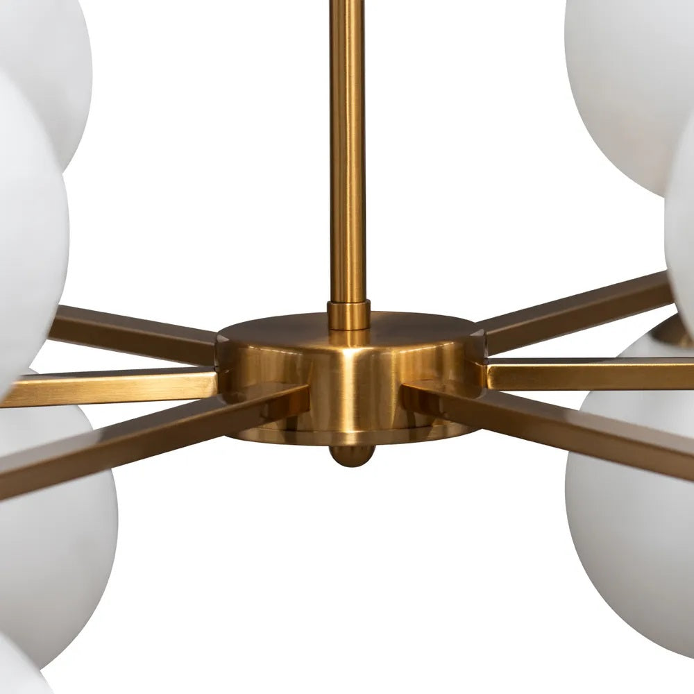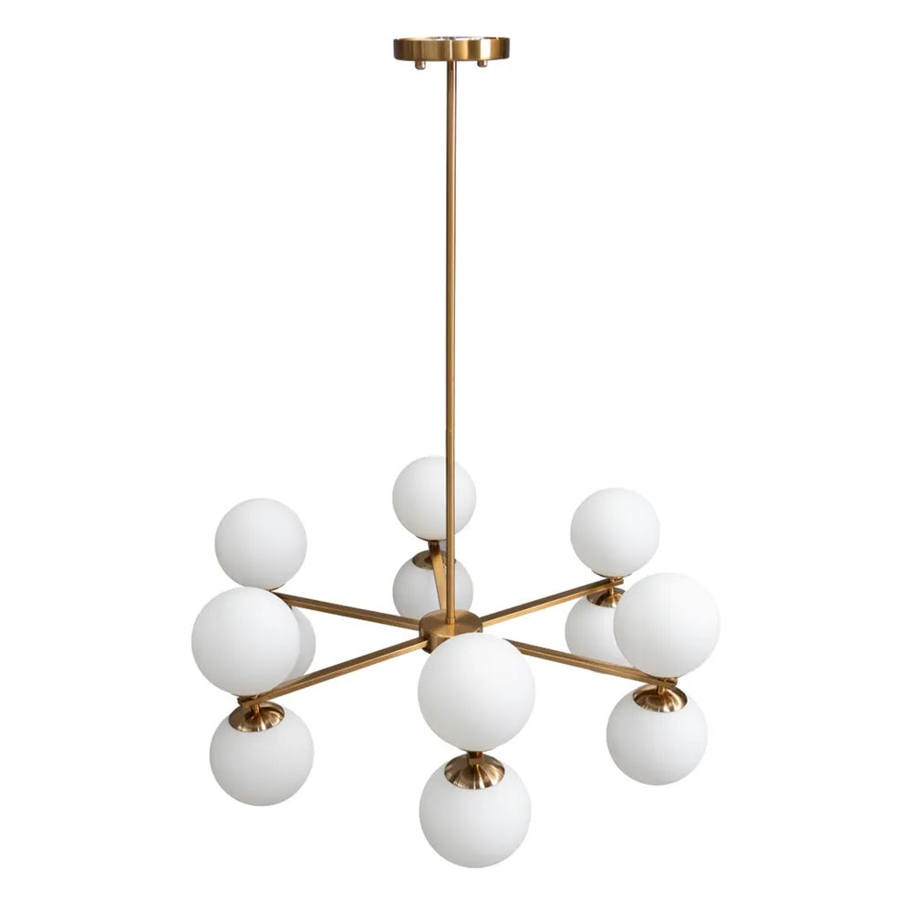 Art Deco reimagined with our Amora Brass Pendant, a luminescent nod to Mid-Century Modern design. Milky opal glass orbs gracefully float on a brushed brass fixture, combining classic elegance with contemporary function. Perfect for dining rooms, living spaces, or entryways, its timeless beauty and soft glow create an inviting atmosphere that lasts.