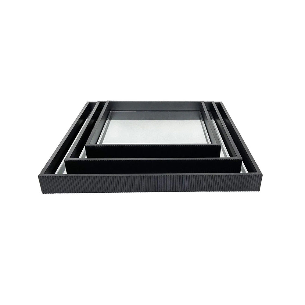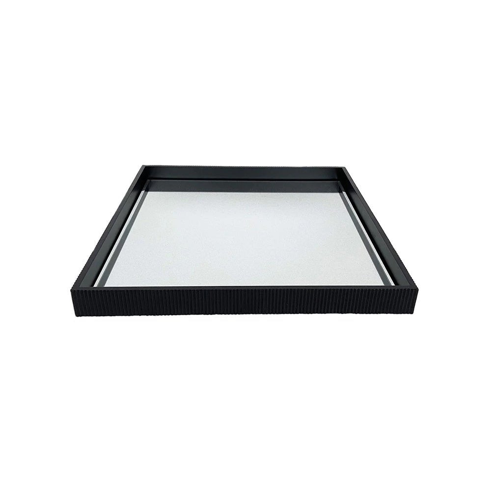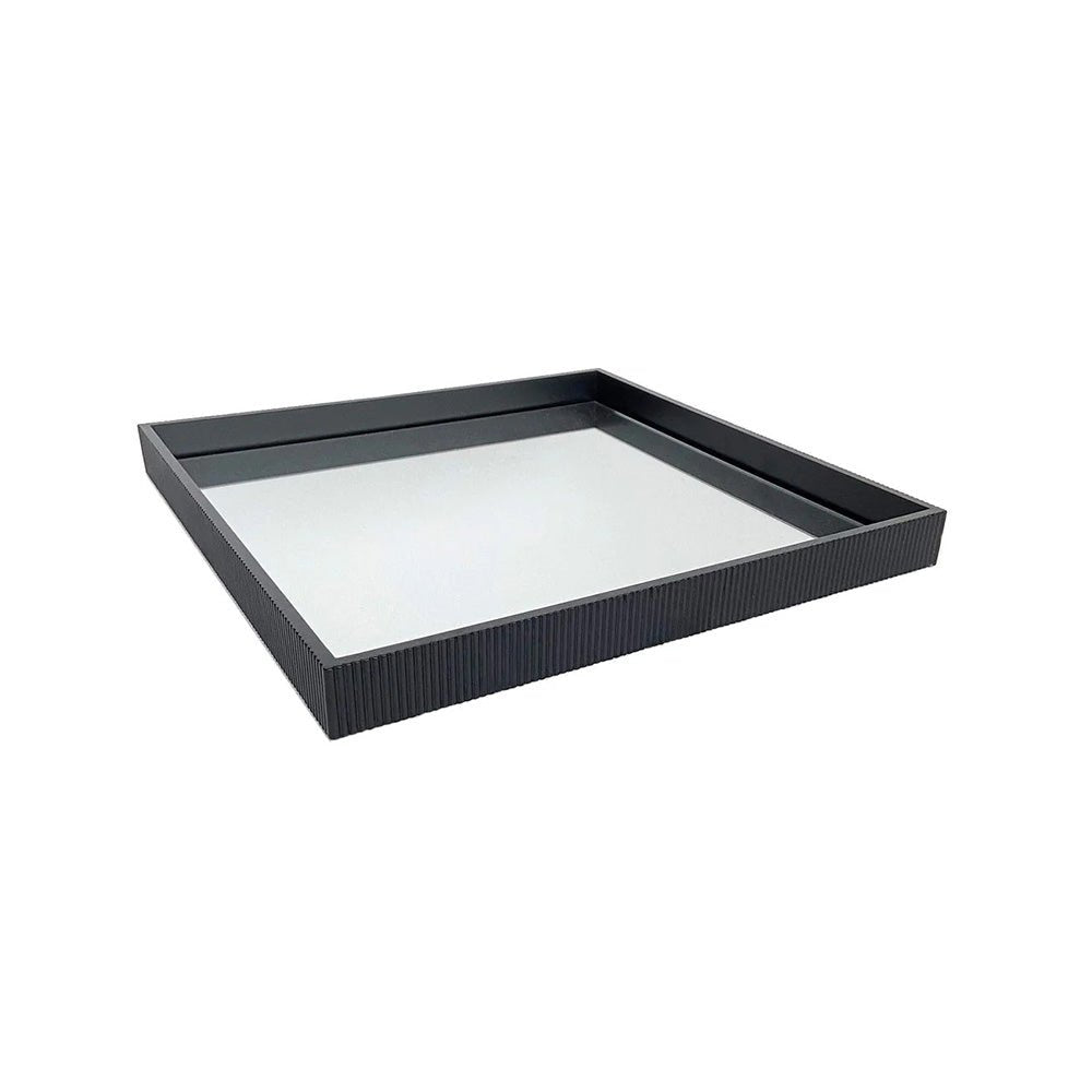 A striking addition to any bedroom, entry or living room scene, the Miles mirrored tray in black offers a fresh, uncomplicated, modern aesthetic. Available in a range of sizes, Miles features a bevelled mirrored base surrounded by a chic black satin frame with ribbed detailing - making for a sophisticated statement. The perfect accessory for housing keys, jewellery, or your favourite scents, the Miles mirrored tray is also available in gold leaf.