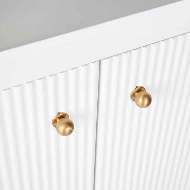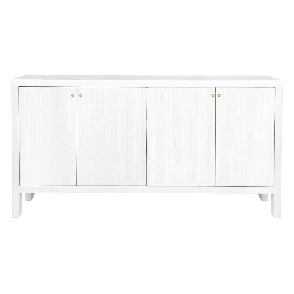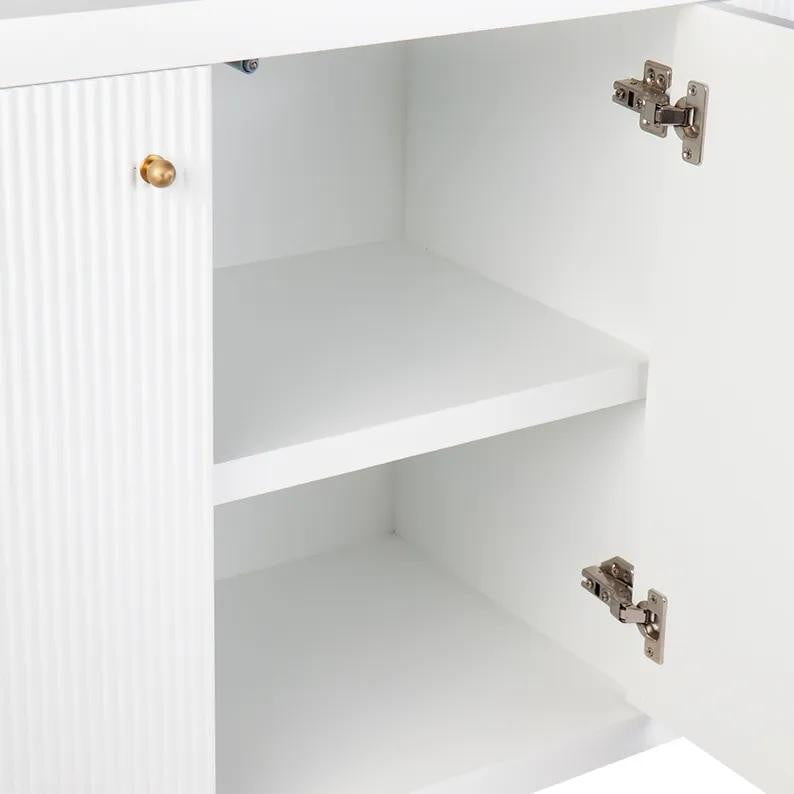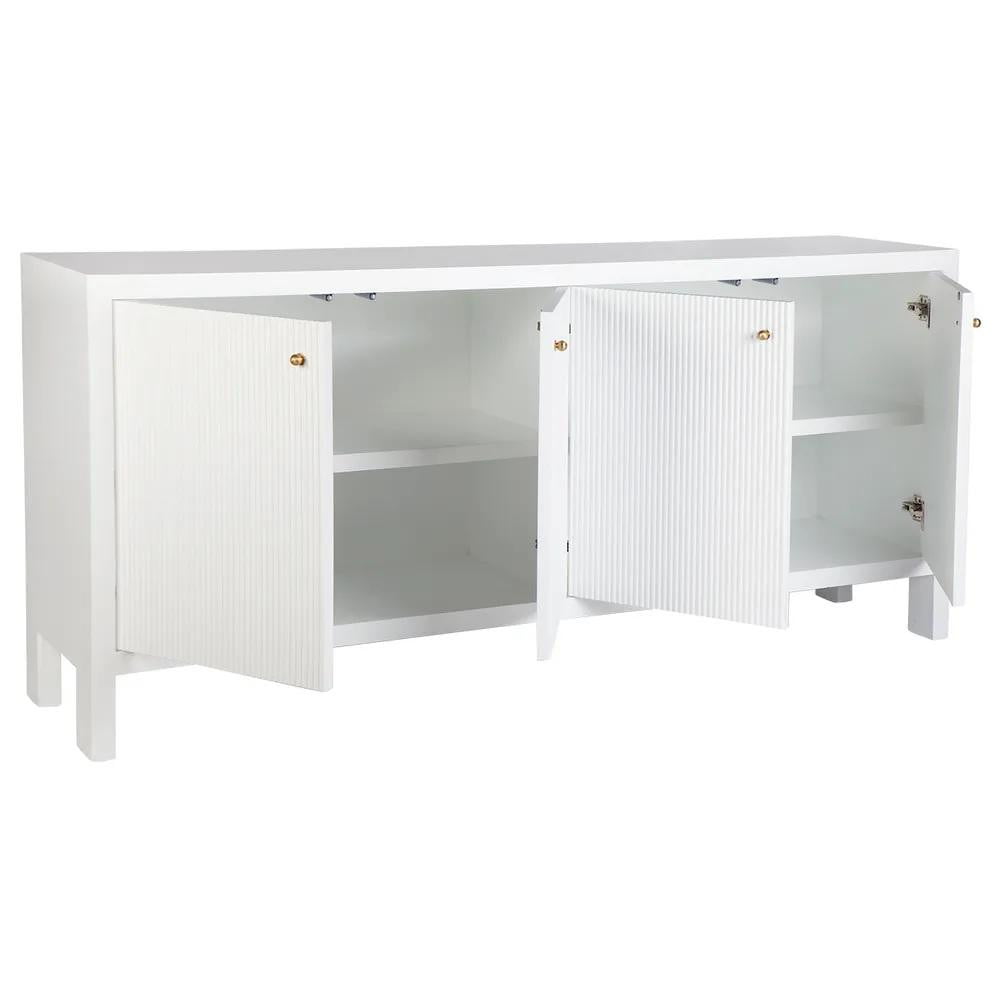 Elevate your space with the Adele White Buffet Cabinet, where elegance meets function. Featuring stunning fluted doors and petite brass handles, this piece exudes timeless charm. Its satin white finish enhances the luxe appeal, while ample storage ensures practicality.