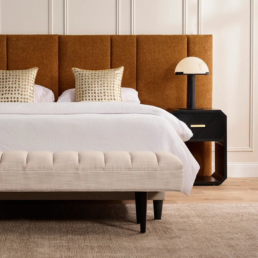 The Central Park Upholstered Ottoman is a multipurpose gem, use as a luxury ottoman for the living area or use as a luxurious bed end.