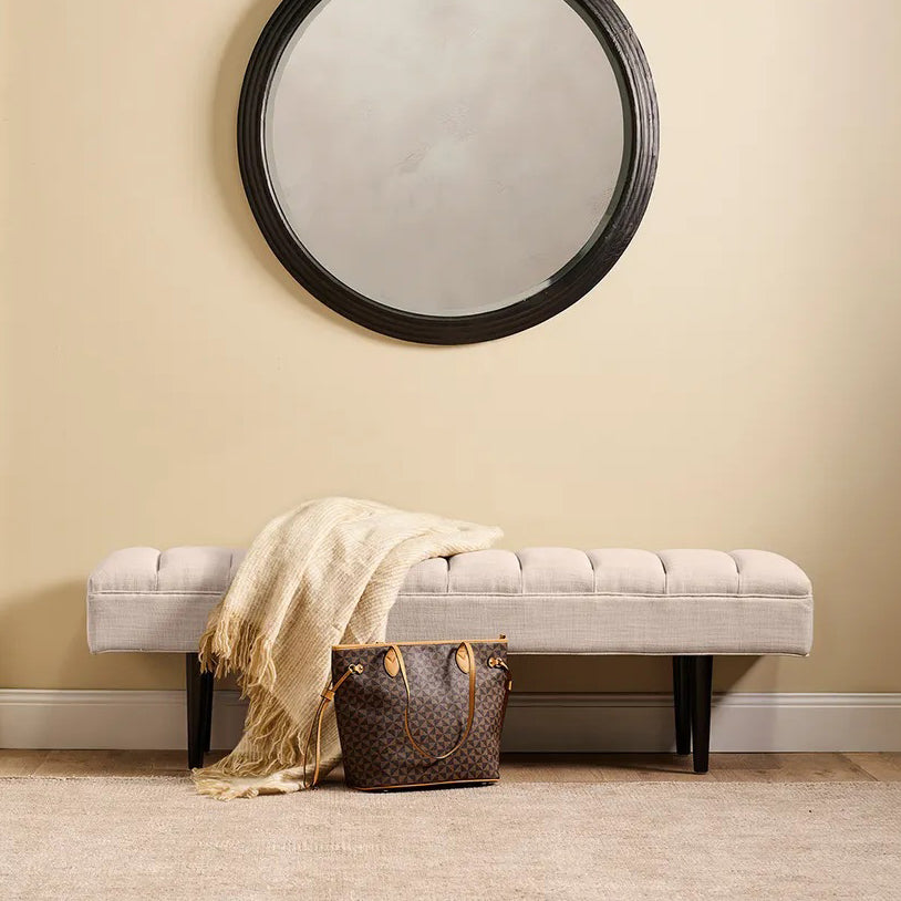 The Central Park Upholstered Ottoman adds a certain chicness to any room and featuring a gorgeously textured natural fawn linen blend fabric, this ottoman is begging to be touched and makes the perfect addition to any living room hallway or bedroom!