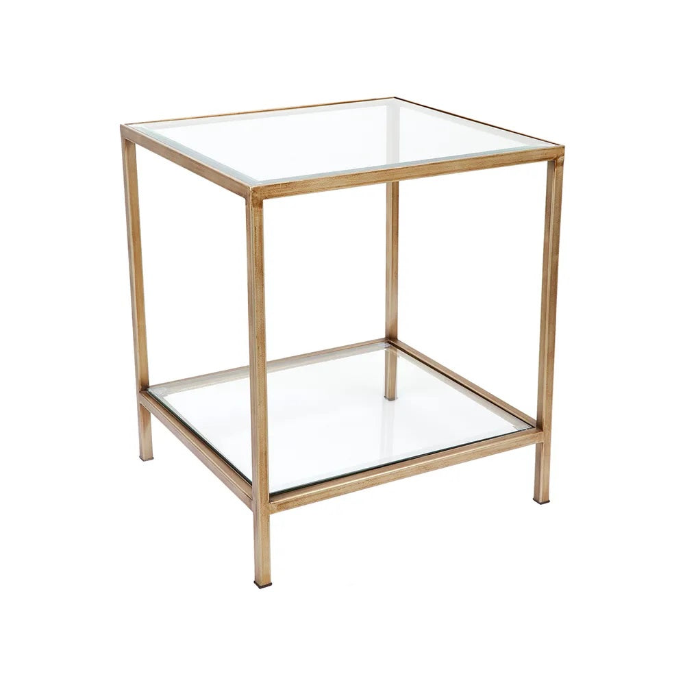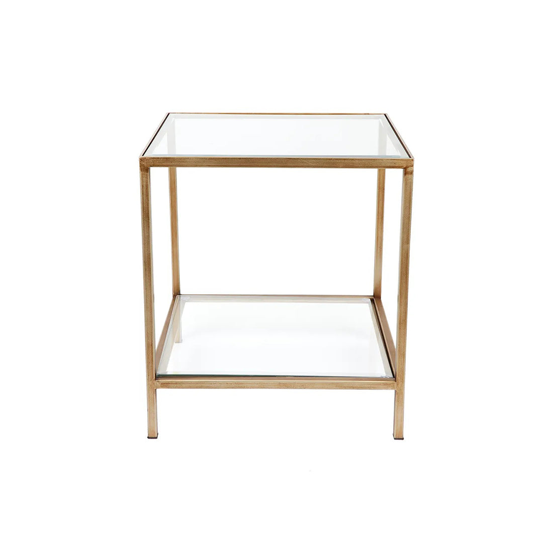 The Cocktail range brings a perfect blend of class and functionality to your home, featuring a sleek, open design. Each piece is crafted with a slender iron frame. The Cocktail square side table, with its refined proportions, is finished in an antique gold, hand-painted hue, and accented by inlaid bevelled-edge glass—an elegant addition to any sophisticated space. Style a pair of these charming tables on either side of a sofa or bed to add both beauty and practicality.
