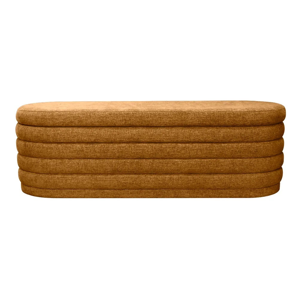 Elevate your interior with the Demi Storage Bench Ottoman—rich mustard upholstery, sculptural curves, and refined panelled detailing. Bold yet polished, it conceals generous storage beneath a lift-up lid. A confident statement for bedrooms or entryways, available in a curated palette of luxe finishes.