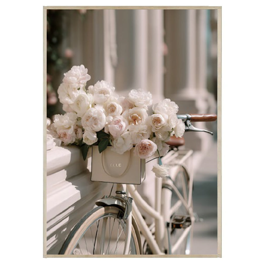 Soft romance meets Parisian charm with the Elle Bike Wall Art. A graceful bicycle adorned with delicate ivory blooms evokes slow mornings, sunlit boulevards, and effortless elegance—bringing a light, dreamy sophistication to your interior with its serene palette and timeless European aesthetic.