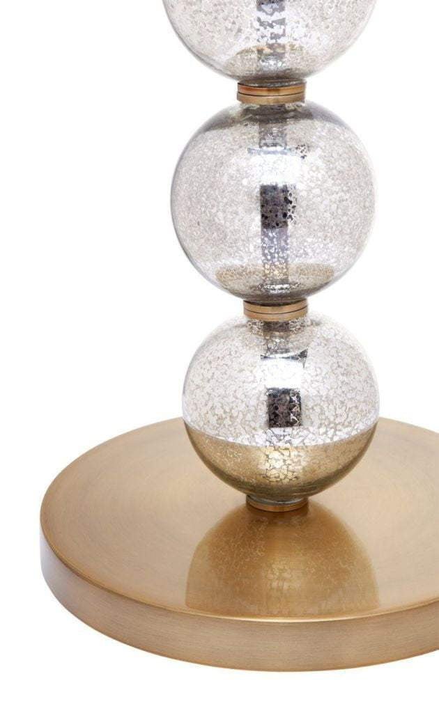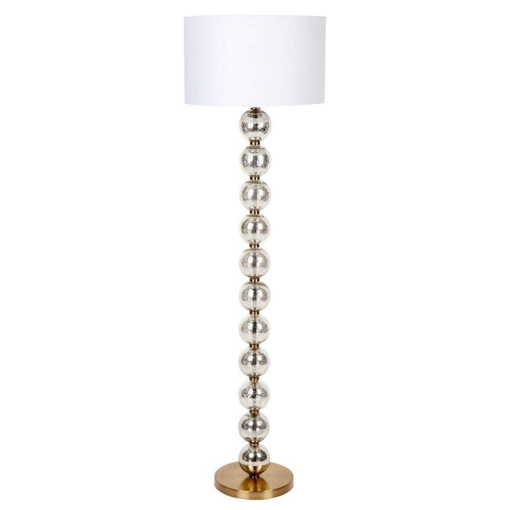 Need a bit of an eclectic touch to your room, then the Evie Floor Lamp is the one for you. The mercury glass baubles which are interspersed with brass fittings makes this lamp a good fit for your Art Deco theme. It is topped with a gold thread drum shade. The Evie range is also available in matching table lamp.