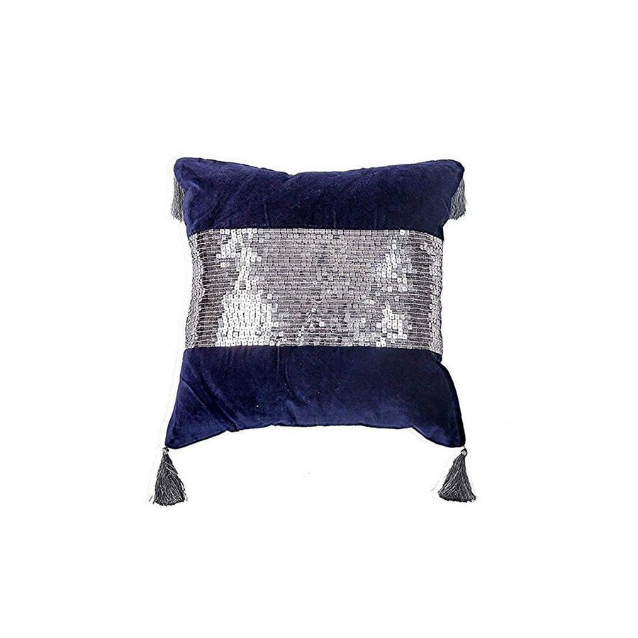 Add chic style to your interior with this exquisite handmade cushion cover from Attica Home. Made of soft velvet with beautiful silver beaded embroidery handcrafted by talented artisans to create this stunning blue and white Attica cushion cover. Also adorned with four lovely handmade silver tassels to add to the look - a stylish, classy addition to your lounge or armchair !!