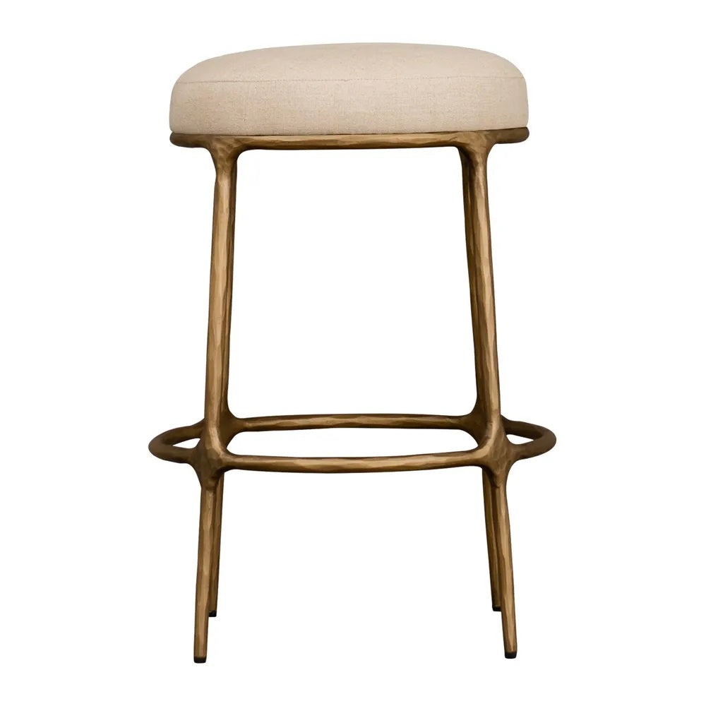 Heston Brass Kitchen Stool - Natural Linen