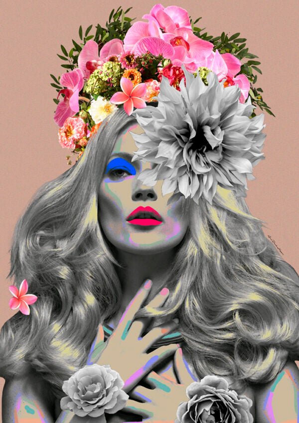 Ana Paula Hoppe is a Brazilian artist who is passionate about art and flowers. The delicacy and strength of being a woman, self-love, the colours and beauty of flowers are her main inspirations. Artist by vocation, Ana Paula devoted herself to music for a while, and in an unpretentious and self-taught way, she started to create 100% digital collages.