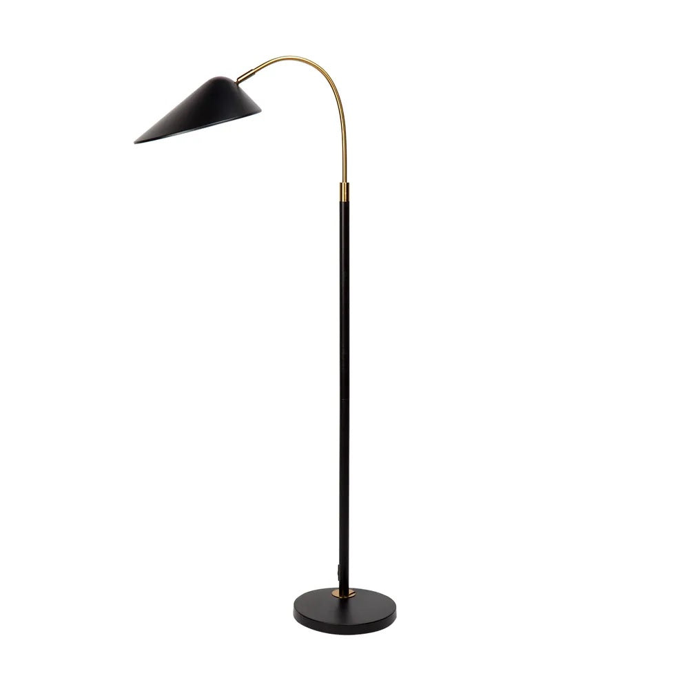 Our Kenya Floor Lamp comes with curves and a sense of style. The new aged brass stem extends from a black base and is topped with a unique triangular curved shade. Utilize this stunner in your posh living room or your modern office space. Matching table lamp is also available for you to have a complimentary set.