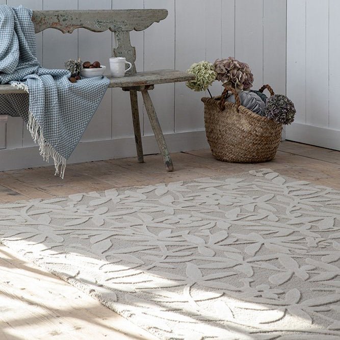 This charming floral design was first added to the Laura Ashley archive in the 1970s. The Cleavers features a silhouette trailing leaves and daisy shapes. This beautiful floral design has been translated in a rug with an attractive bas-relief texture in a hand carved cut and loop pile. Next to a rectangular form this rug is also available as a round shape. Wouldn't it be nice to make it the centrepiece of your living room!