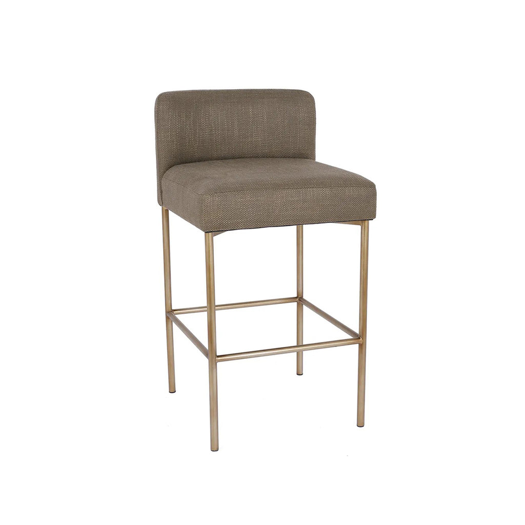 Tailored for modern living, the Loren Chocolate Linen Kitchen Stool features a sculpted seat wrapped in textured linen for superior comfort, while its slim antique gold frame adds a touch of refined glamour. Perfectly proportioned for kitchen counters and islands, this versatile piece slips seamlessly into contemporary urban interiors. With its clean lines and luxe finish, the Loren kitchen stool is where everyday functionality meets timeless elegance—designed to enhance the heart of your home.