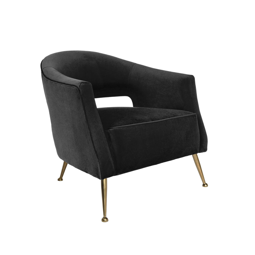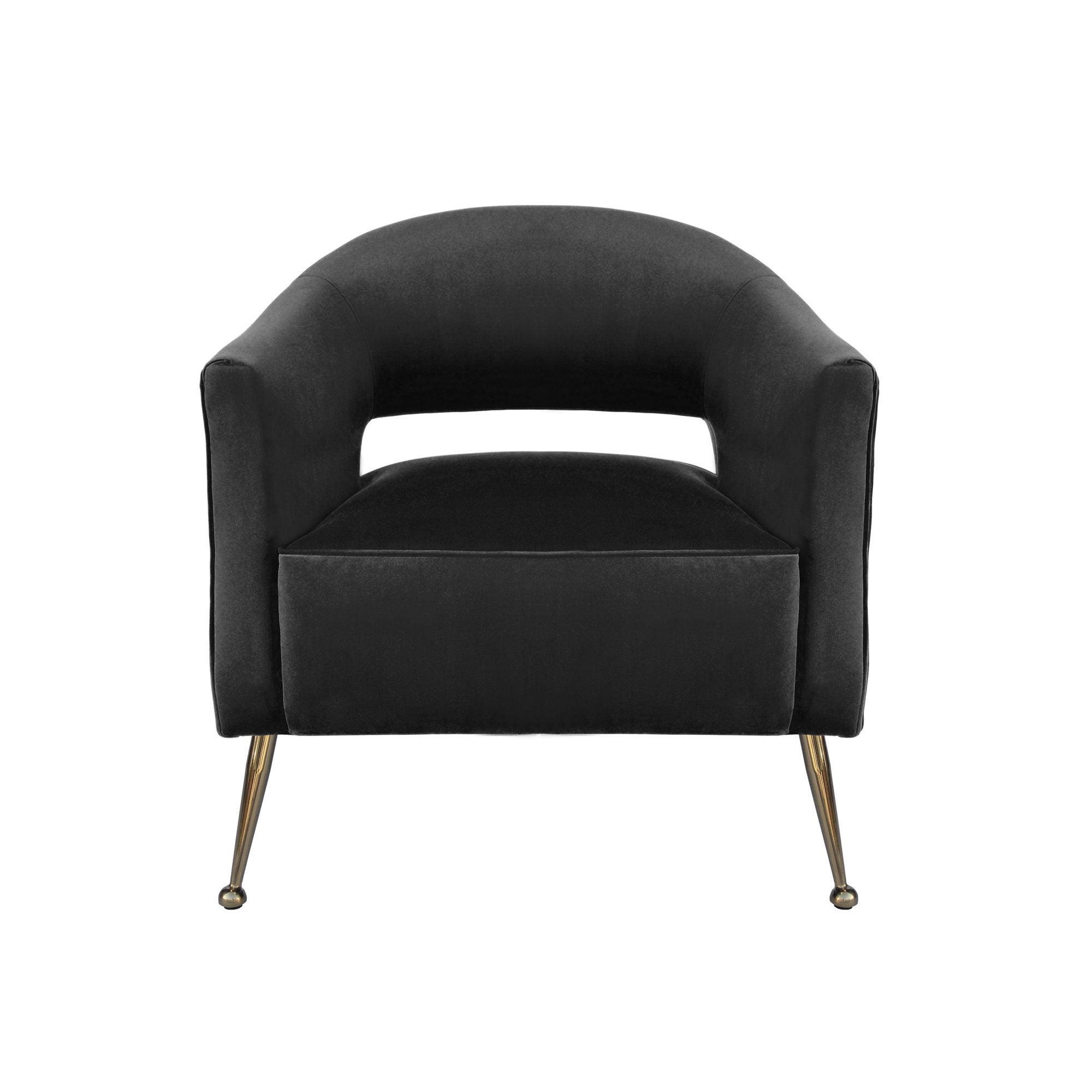 Effortlessly stylish and superbly comfortable, the London Armchair in stylish black is designed to bring elegance and versatility to any living space. Its thoughtfully compact footprint makes it ideal for conserving space without compromising on comfort. Upholstered in a stunning black velvet, it adds a sophisticated touch to your décor.