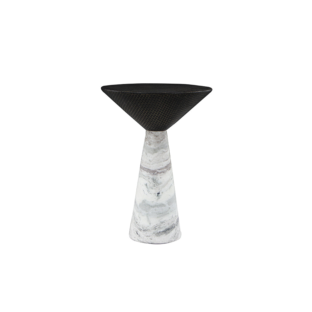 The Manhattan Side Table exudes timeless elegance with its bronze metal-clad top and tapered marble base. A perfect blend of luxury and sophistication, it effortlessly enhances any space. Ideal as a chic accent piece, this table combines style with function, making it a standout addition to your home.
