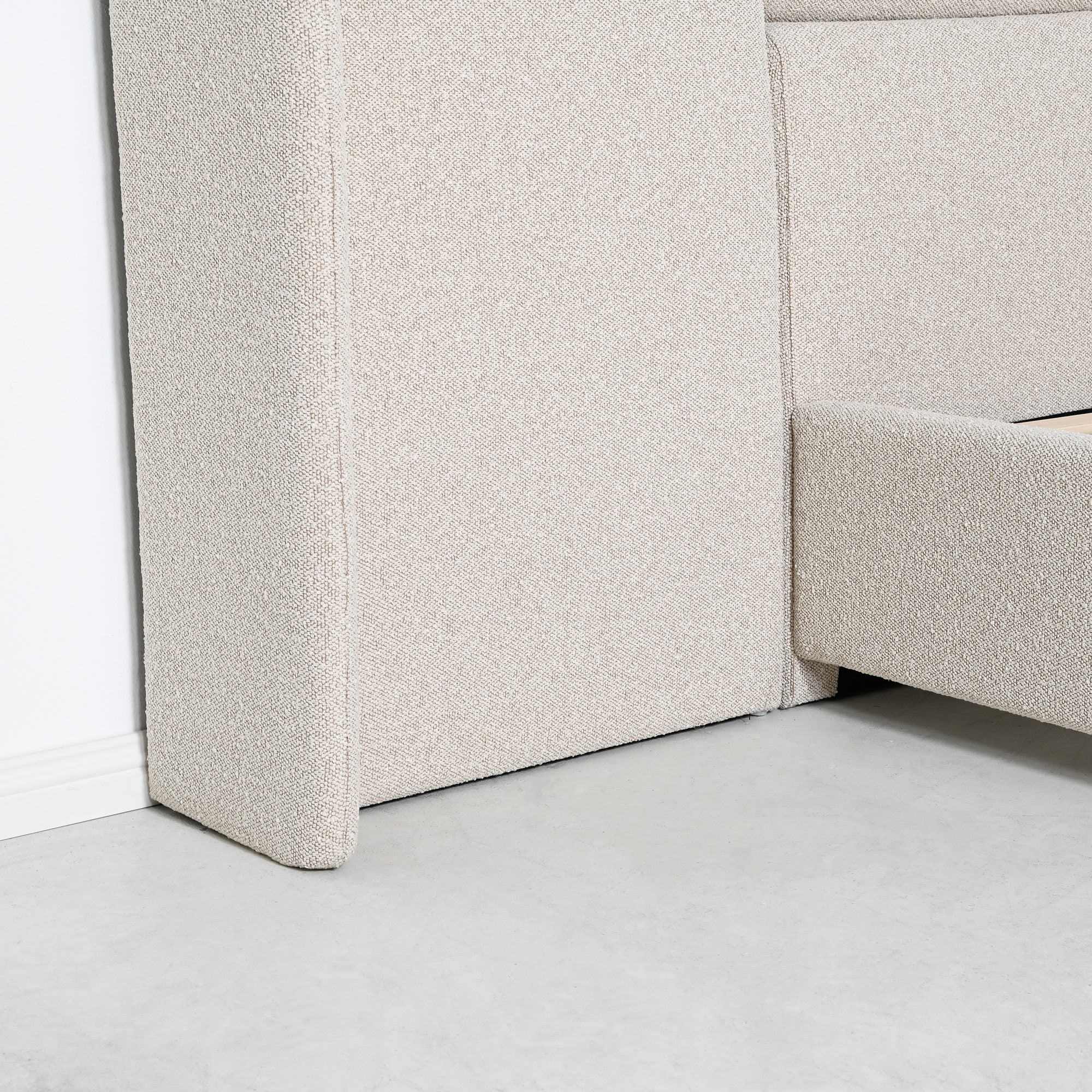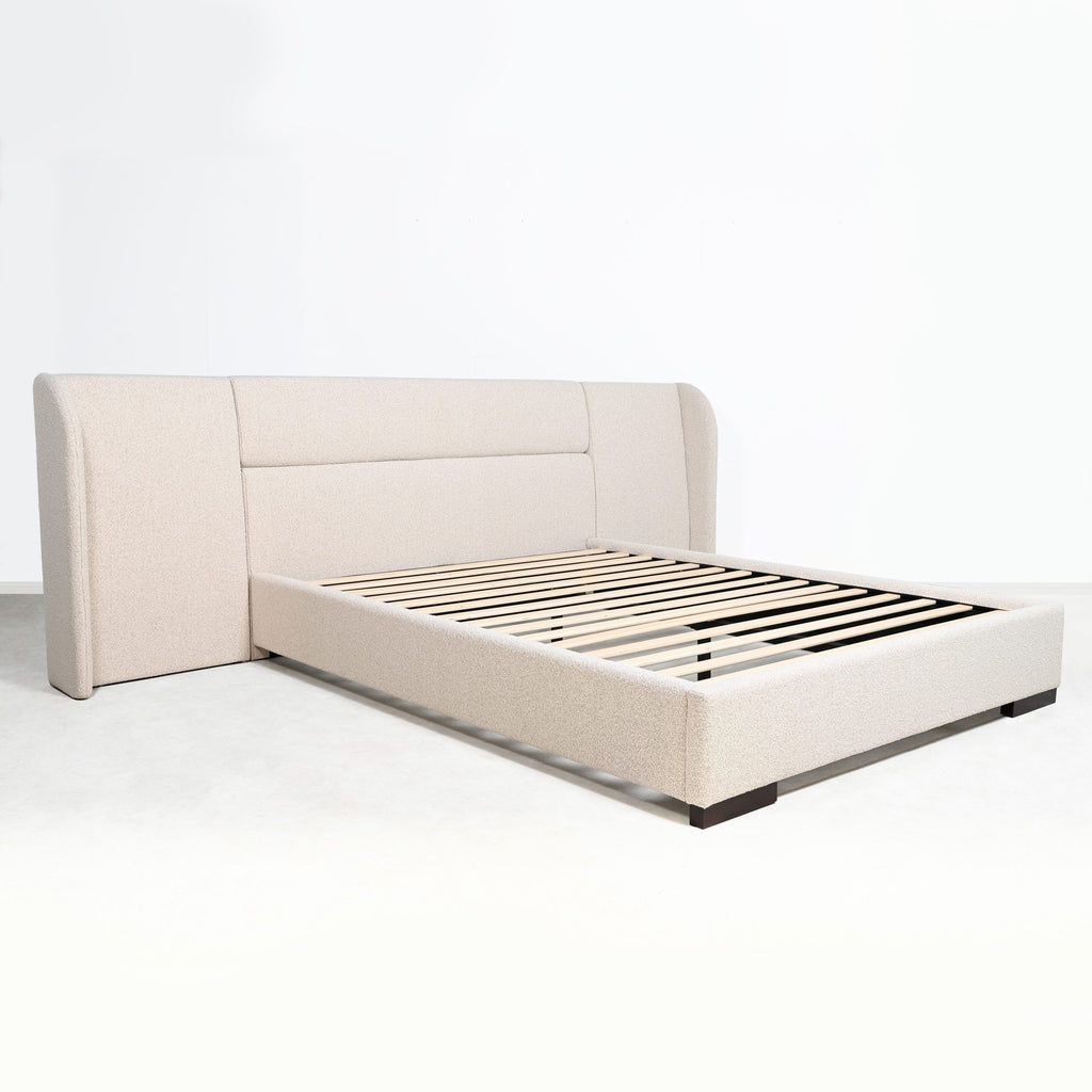 Experience modern elegance with the Baxter Bed in luxurious oatmeal - where sleek design meets sublime comfort. Its low-profile headboard is framed by generously sized wings and luxuriously padded for both support and style. The upholstered base echoes the headboard’s plush finish, extending nearly to the floor for a seamless, tailored look.