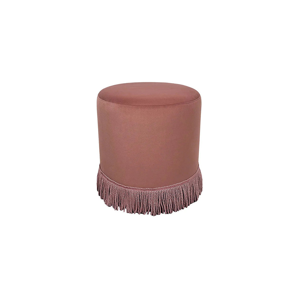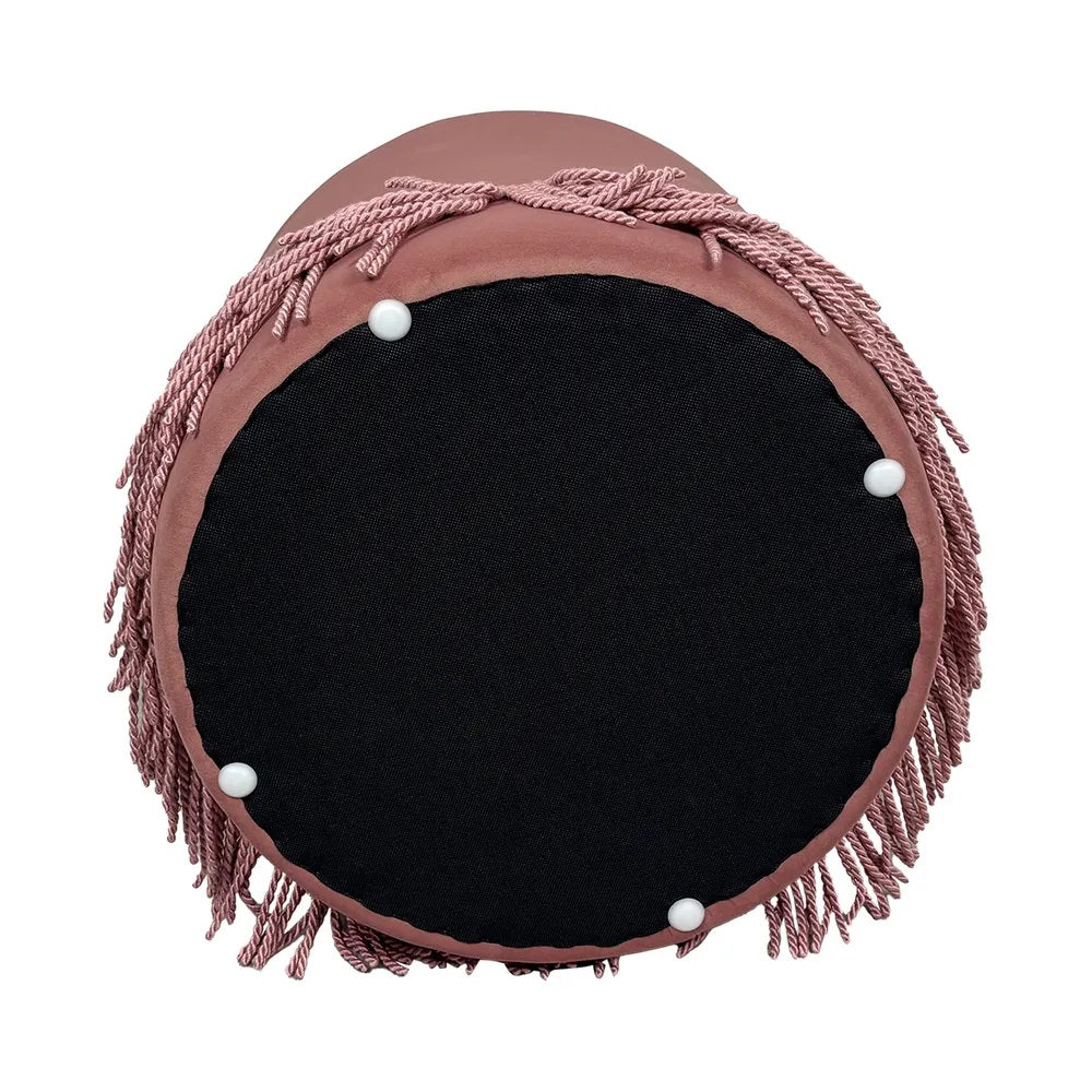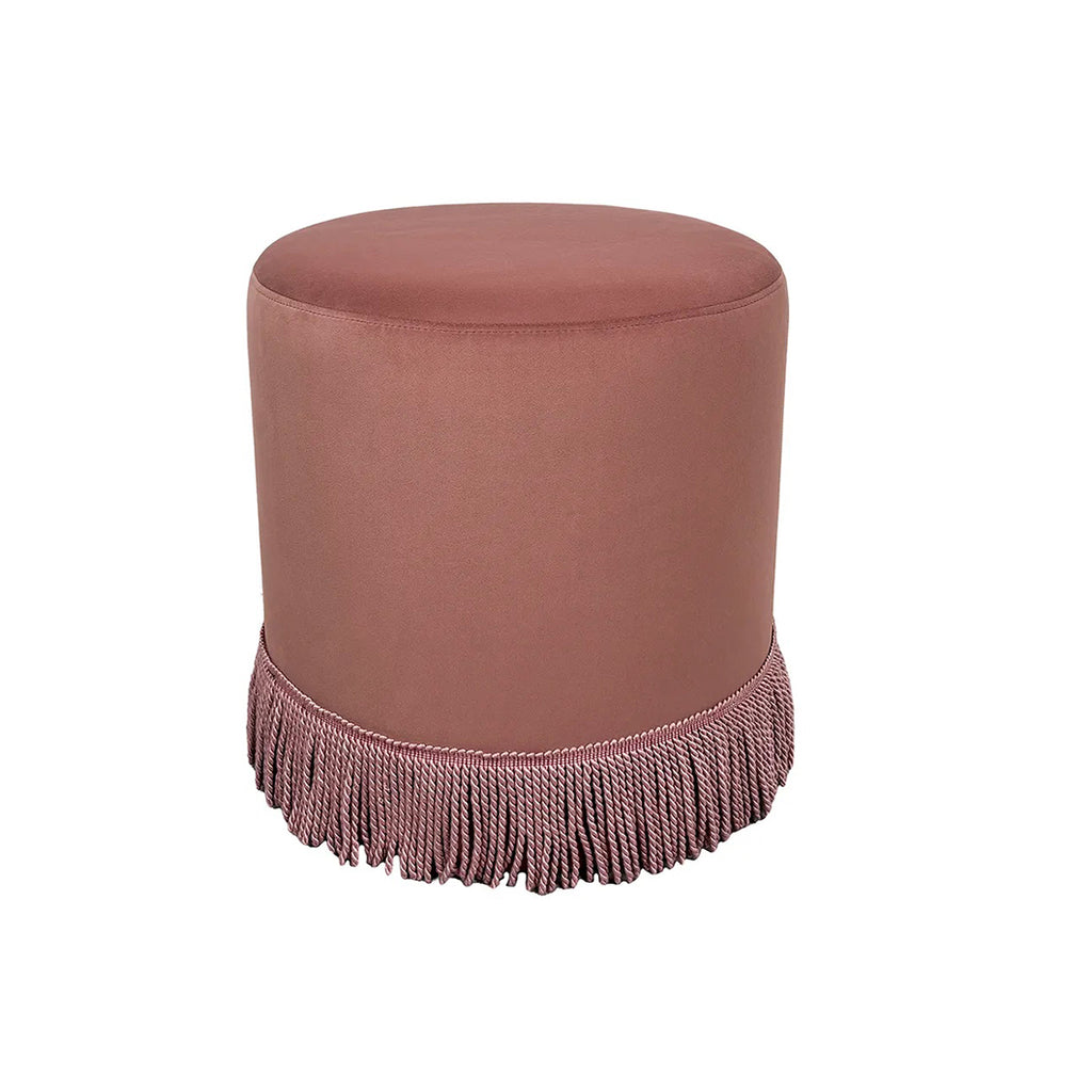 Elevate your decor with this exquisite round ottoman featuring plush velvet and fringe detailing. Available in soft pink, ivory, or duck egg blue, its sumptuous upholstery and playful fringe accents blend style with practicality. Whether used as a comfortable footrest, additional seating, or a striking accent piece, this versatile ottoman adds charm and sophistication to any living room, bedroom, or dressing area.