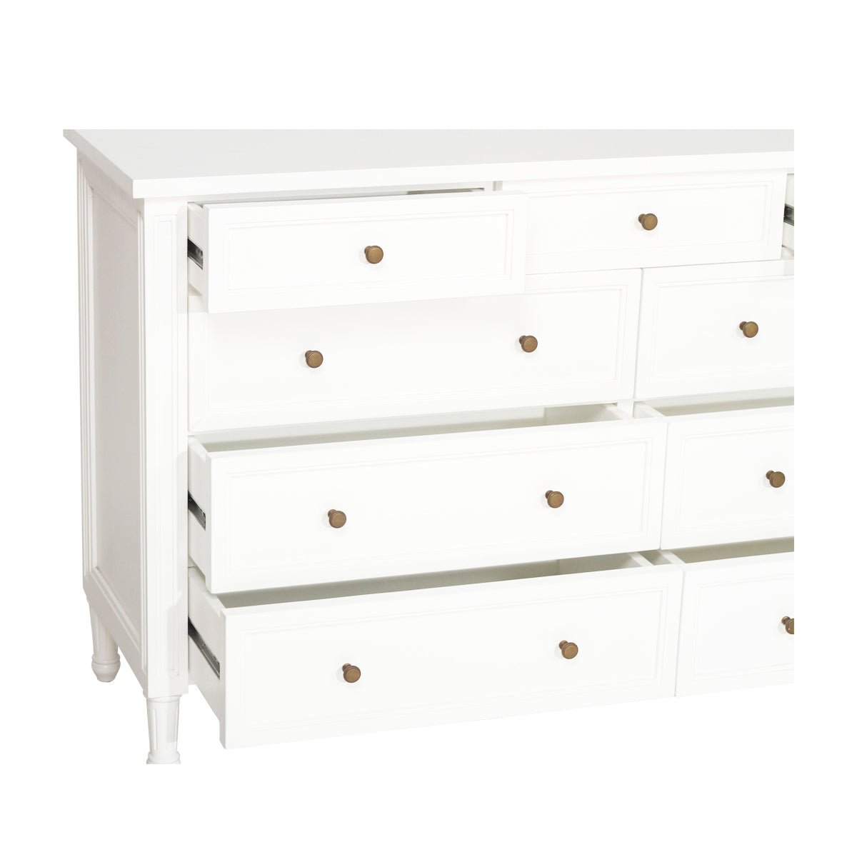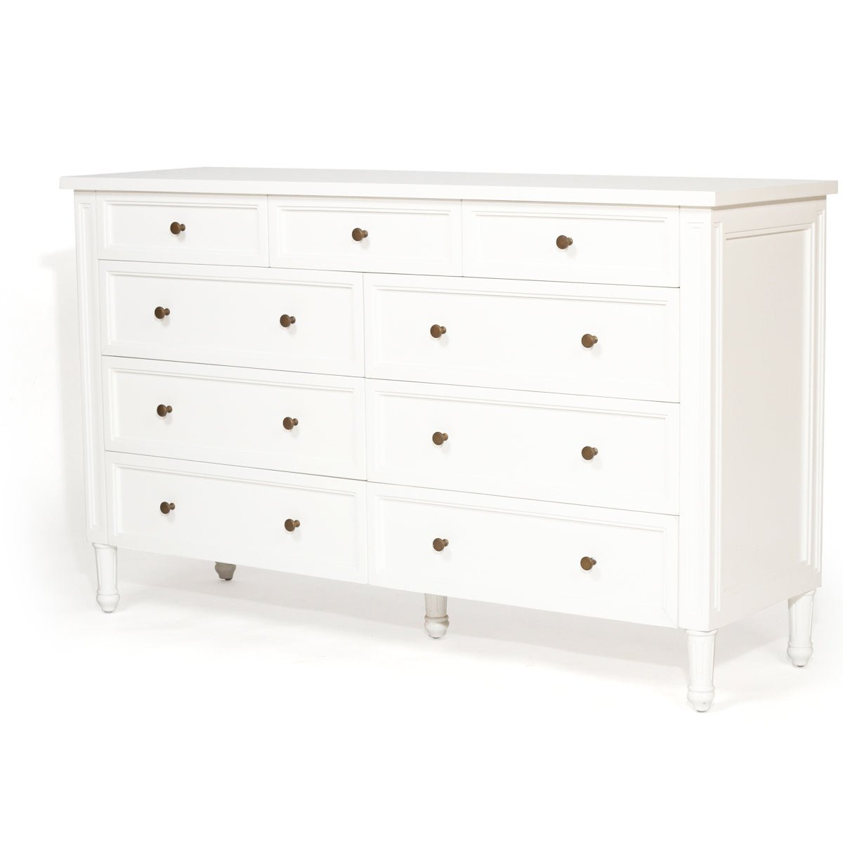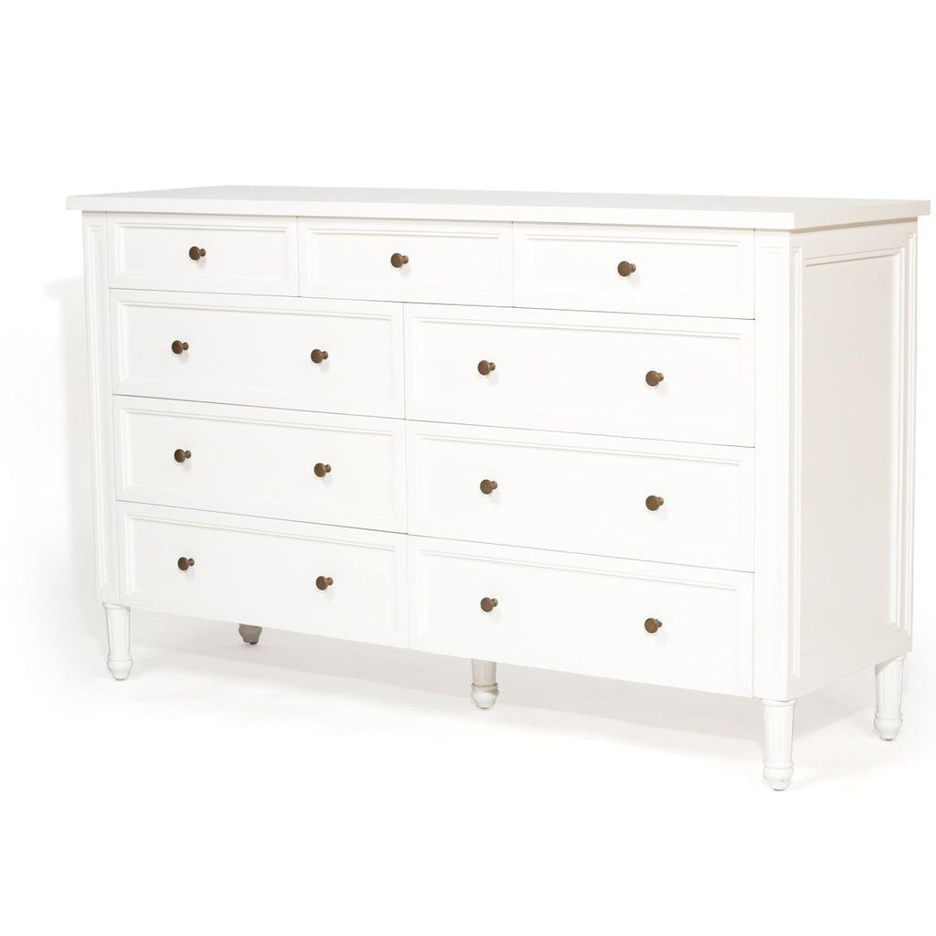 The Newport Chest in white is the crowning addition to the beloved Newport Bedroom Collection, perfectly tying the entire ensemble together. Constructed from solid mahogany wood, this robust and uniquely designed nine-drawer unit stands out both for its durability and its elegance. The dresser's pristine white finish and ample storage make it not only a striking standalone piece for any room but also a harmonious match when paired with our Newport bedside tables.