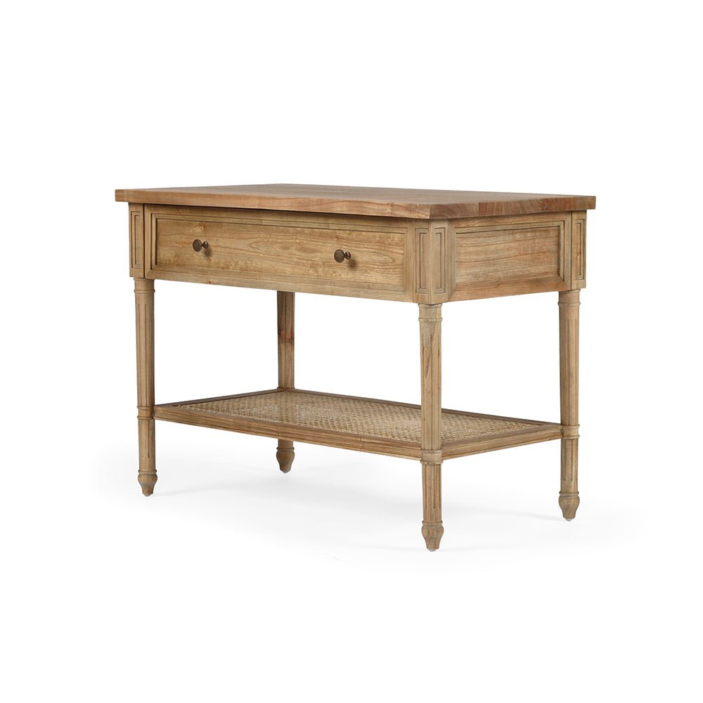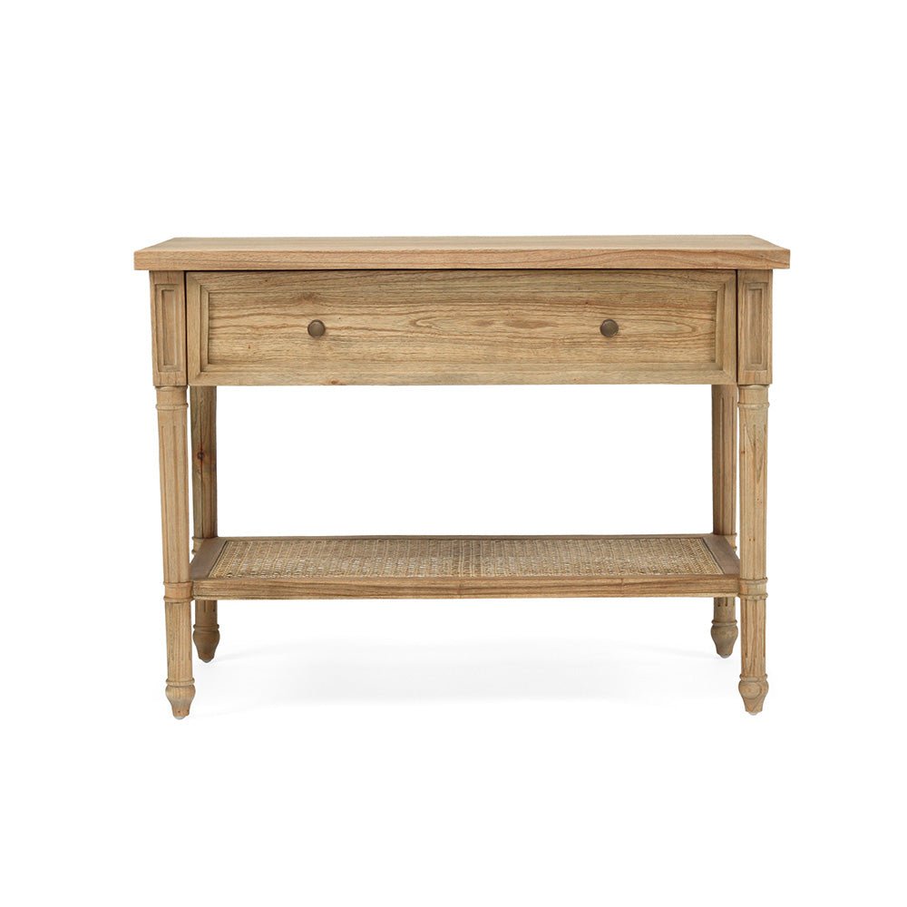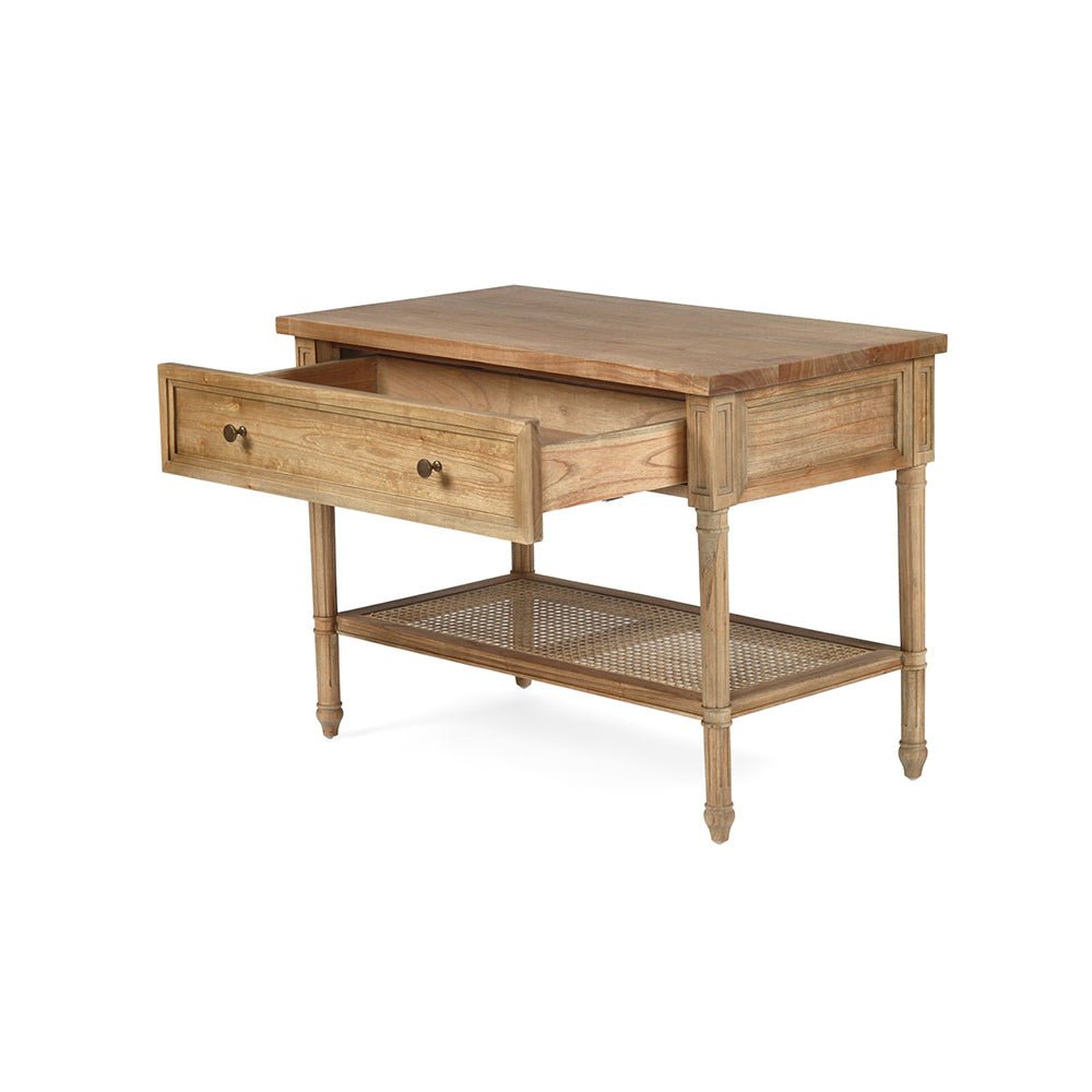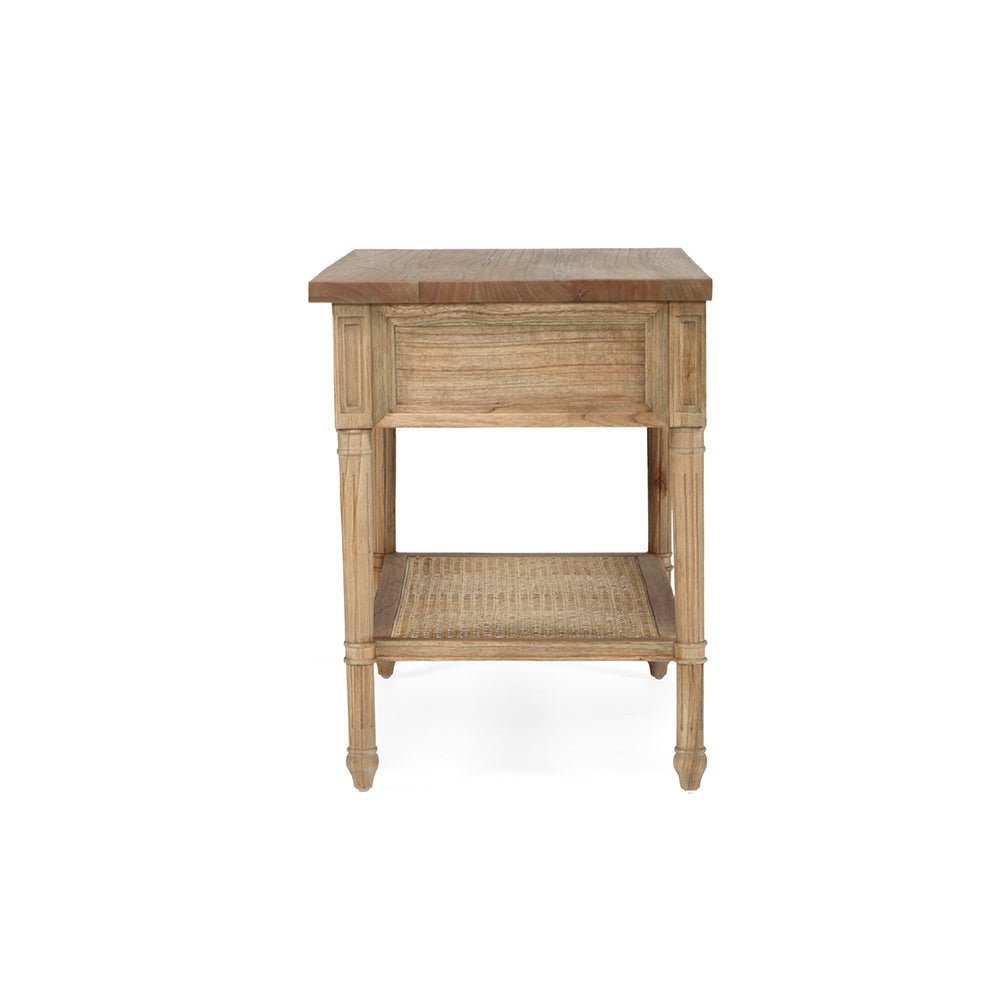 Blending natural materials and textures with timeless design elements, the Newport large Rattan Bedside Table in natural is ideal for a laid-back relaxed setting. It boasts a solid hardwood frame, elegantly fluted legs, and dovetail construction.