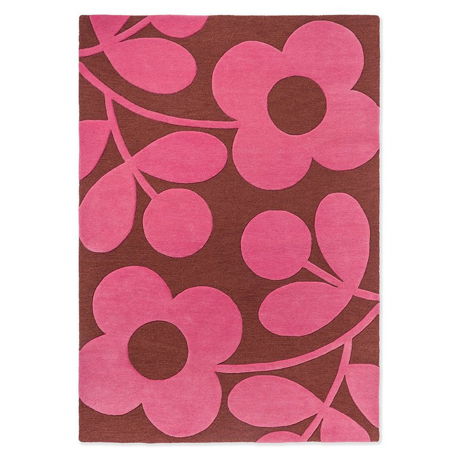 The Sprig Stem Paprika rug, designed by Orla Kiely, exemplifies her passion for mid-century design through its enchanting and detailed craftsmanship. This rug showcases her signature floral motif, magnified for dramatic effect, and serves as a contemporary work of art. Its lively shades of fuchsia and paprika inject a fresh perspective into the timeless design, illustrating Kiely's dedication to blending historical aesthetics with modern trends.