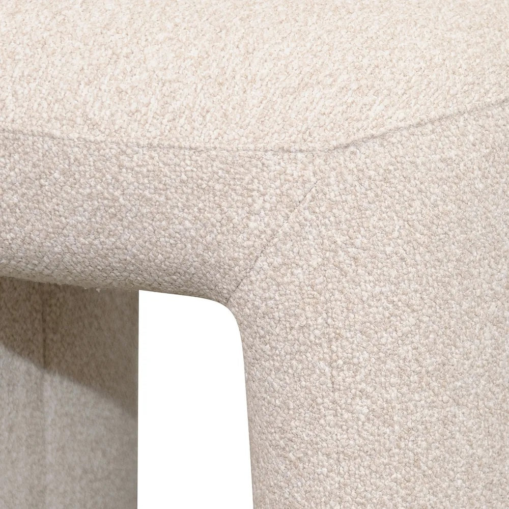 The Piper Stool in natural embraces the curved design trend with its bold, sculptural form and textured bouclé upholstery. Available in four statement colours, it's as stylish as it is comfortable, built on a sturdy wooden frame with plush foam cushioning for a perfect blend of form and function.