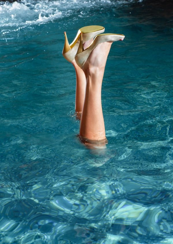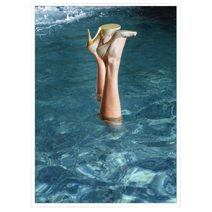 Pool Stand Wall Art merges serene waters with high-fashion boldness. The contrast of tranquil blues and striking heels creates a statement on style, resilience, and adventure. A visually stunning piece that adds beauty, mystery, and a playful edge to any space.
