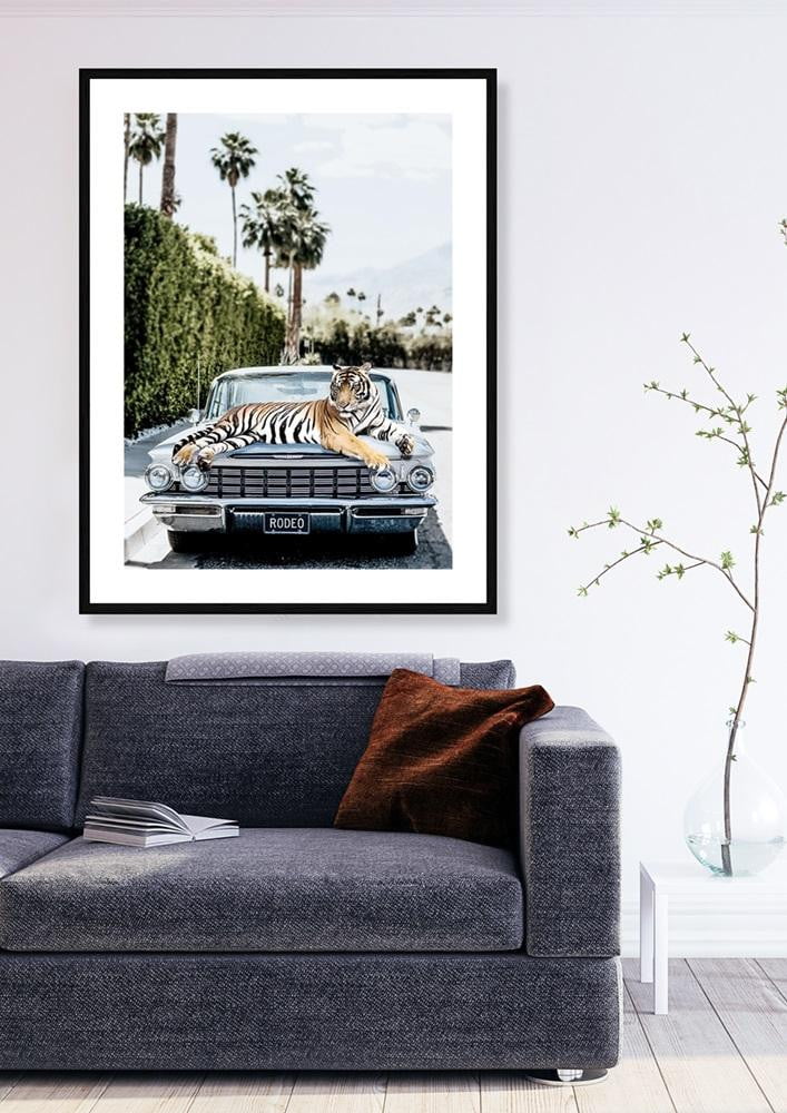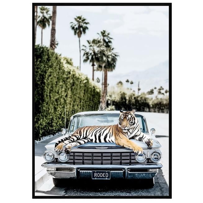 The Rodeo Tiger Artwork - an emblem of eternal glamour, poised atop a classic 1950's car. This stunning masterpiece is the epitome of luxury, the ultimate statement piece every wall desires. A beautifully custom made artwork, it exudes an undeniable sense of style that is simply unmatched. For those who demand nothing but the best in their home interiors, the Rodeo Tiger Artwork is the perfect choice.