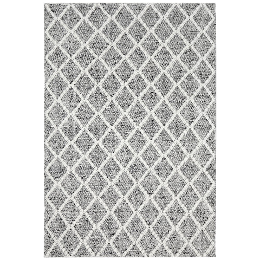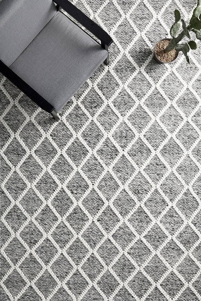 The Huxley Rug in grey embodies a classic design with its enchanting blend of soft grey & white tones and traditional diamond pattern, offering a touch of timeless elegance. Expertly hand-loomed in India, this rug boasts a flat weave construction, meticulously crafted from a luxurious mix of wool and polyester. Its rich texture and subtle hues promise to infuse any room with an air of sophistication and elegance.
