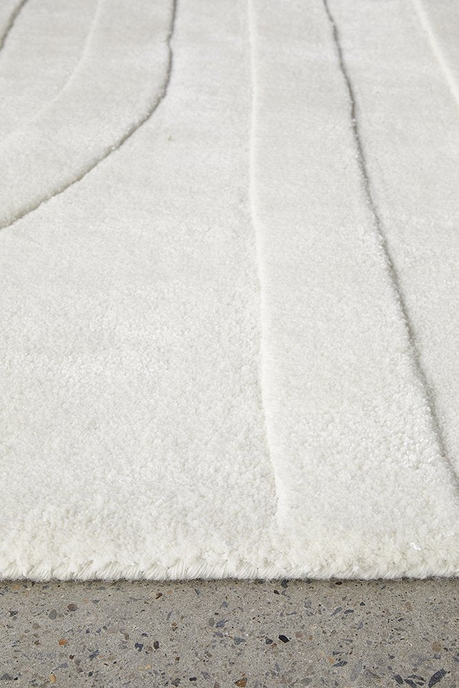 Elegantly subdued yet intricately crafted, the Summit Trail rug in white showcases a hand-carved arch design that invokes a feeling of unity and connection. The Summit Collection is renowned for its soothing textures and timeless designs. Each rug in this coveted collection is uniquely crafted, primarily using high-quality wool yarn. Offering a plush underfoot experience and featuring tranquil, soft undertones, Summit effortlessly infuses dreamy vibes into any space.