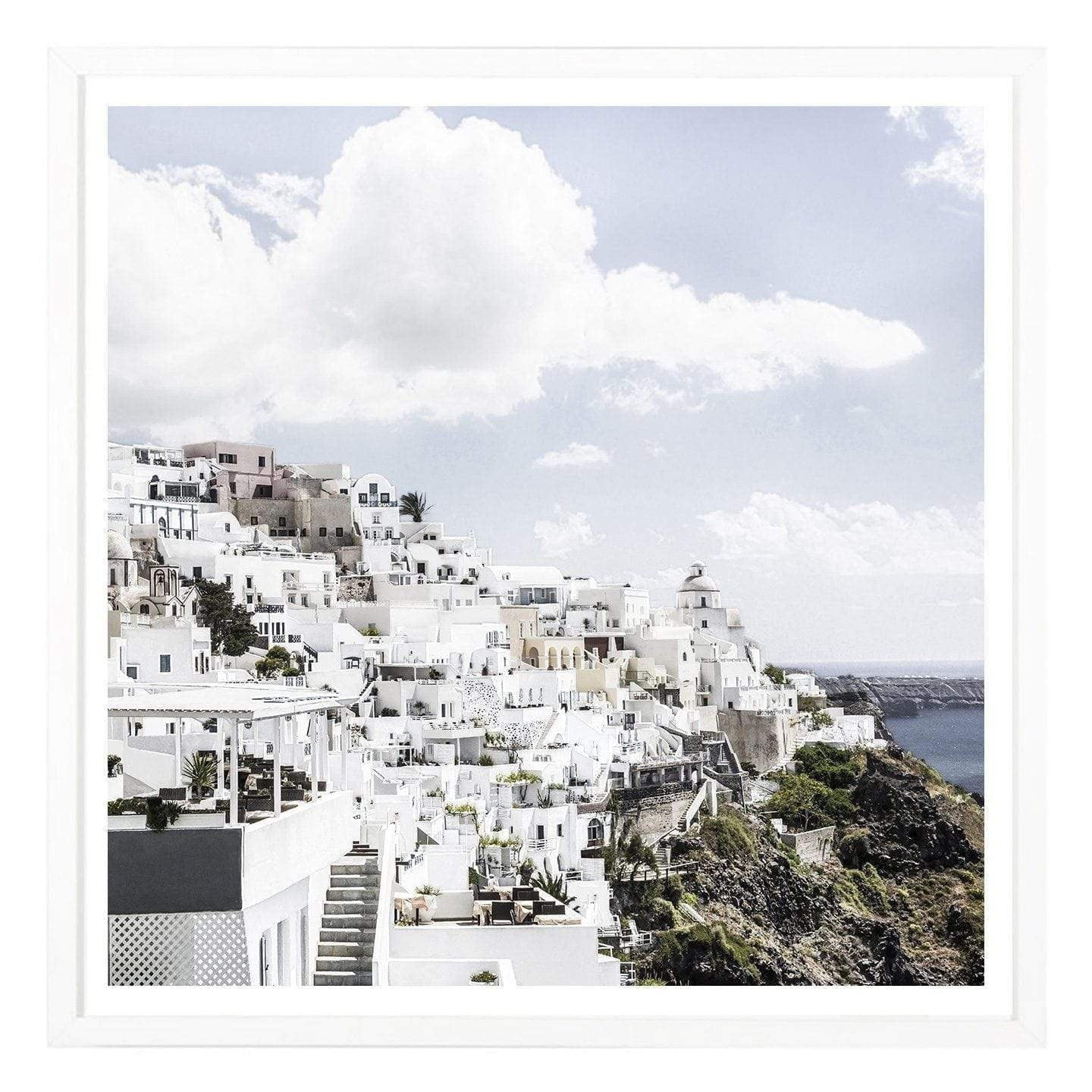 Transform your home interior with our fabulous Santorini Art Print featuring a Santorini Village overlooking the Aegean Sea.