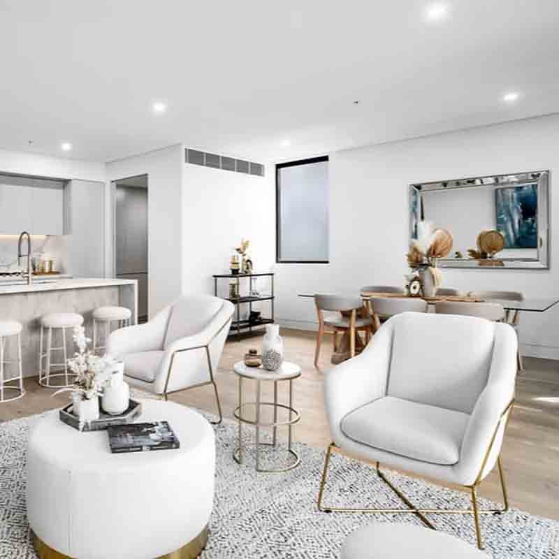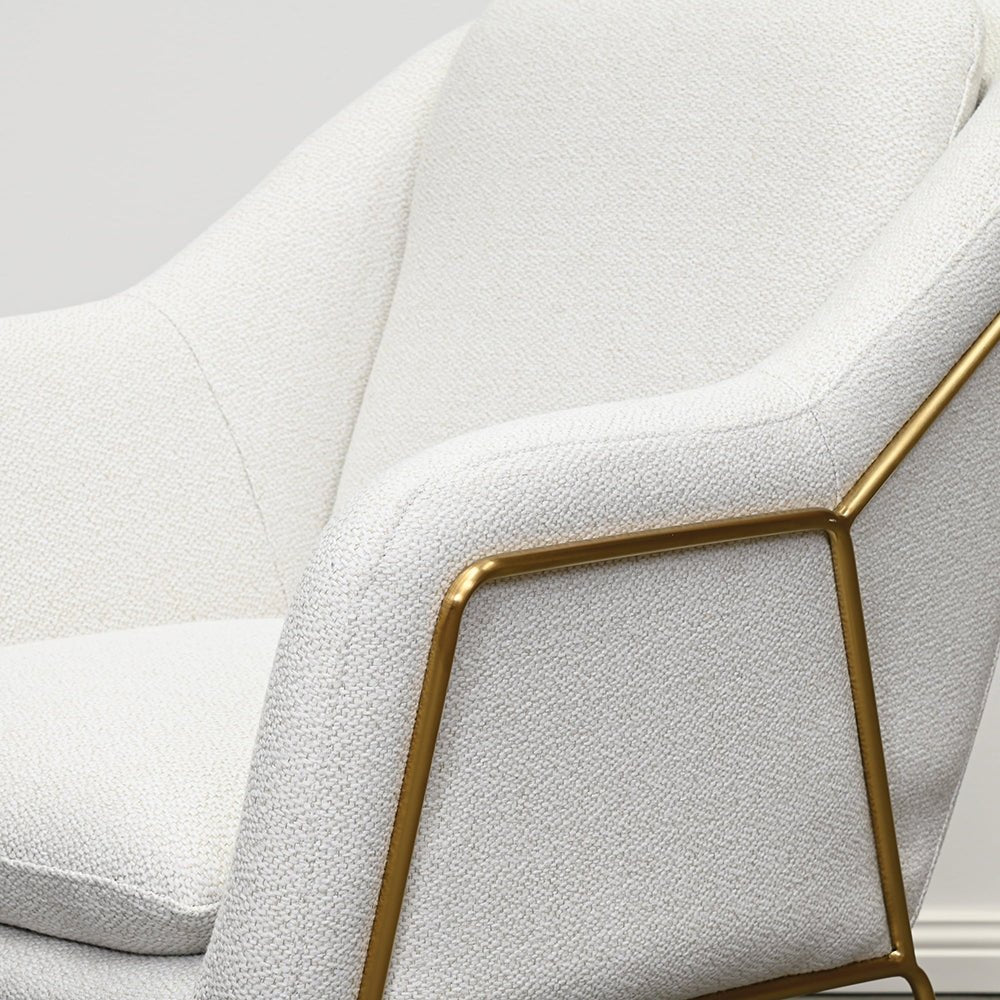 The white Studio Armchair exudes an effortlessly chic allure. Its sleek, uncluttered design harmonises with an opulent curved backrest, evoking a plush aesthetic. This opulence tastefully counterbalances a gilded frame, resulting in an elegant statement piece that strikes the perfect balance between glamour and restraint.