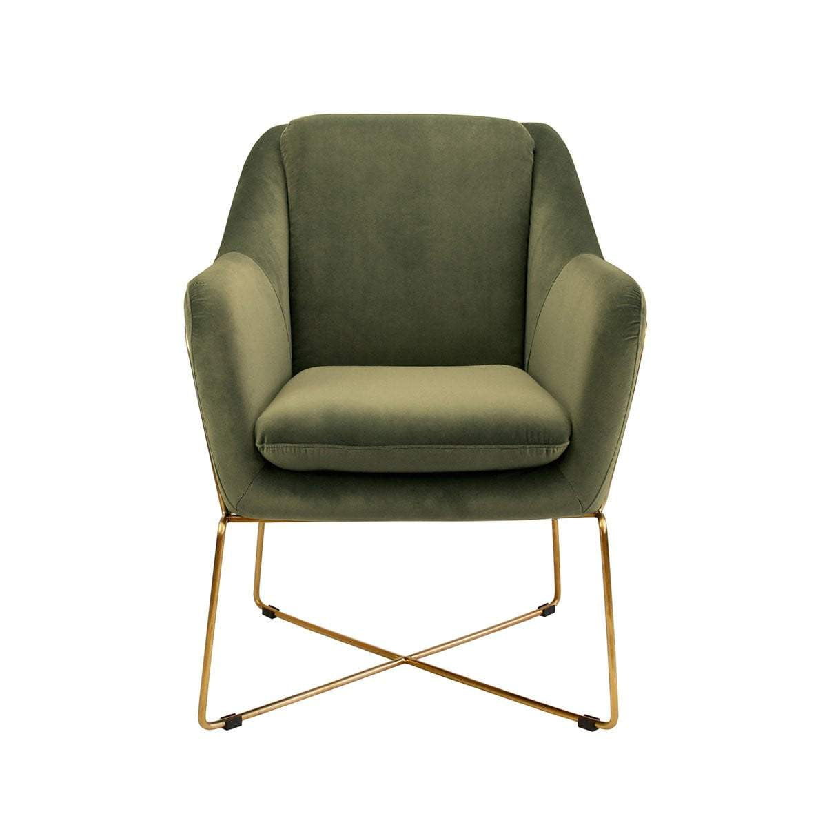 Go green, but make it glam. The Studio Olive Velvet Armchair serves up plush curves, rich colour, and a golden base that gleams from every angle. It's minimalist, maximalist, and made for lounging in style. Also available in blush, black, blue, and beyond—because one fabulous shade is never enough.