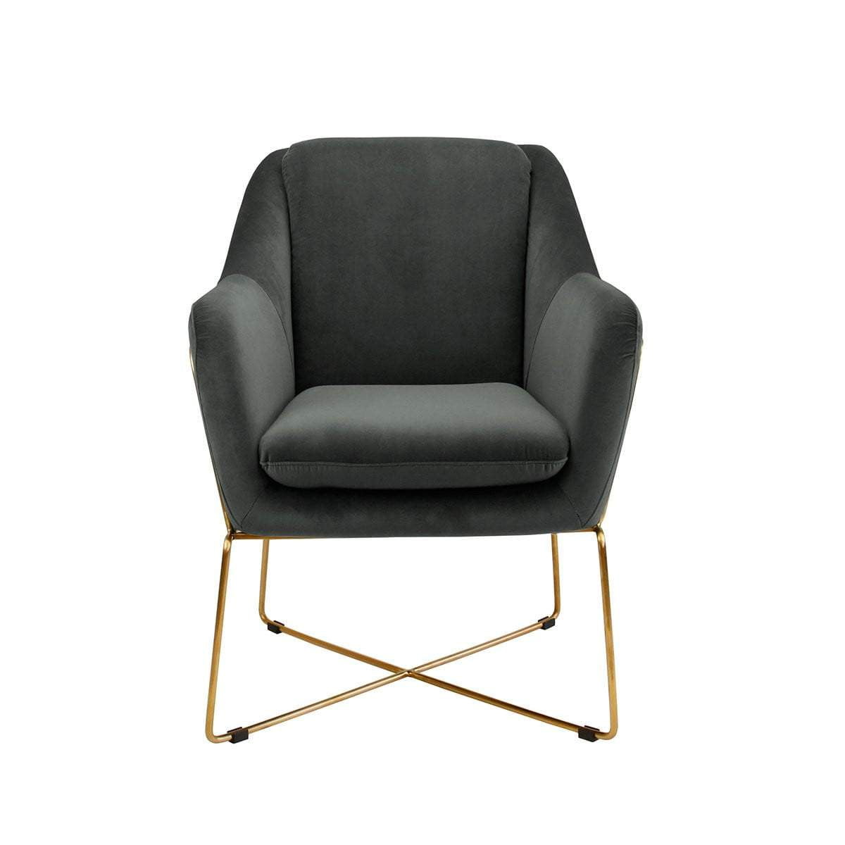 This velvet armchair isn't just fashionable- it's a statement piece. Its charcoal grey coloured velvet covers the curves of its rounded back, the contrast of the golden frame lending a touch of luxury. Not too flashy but still modern, this velvet armchair lends an air of sophistication to any room it inhabits with its approachable demeanour and well-composed lines. Lose yourself in velvety luxury with the Studio Velvet Armchair– designed for comfort so you won't want to leave your seat!