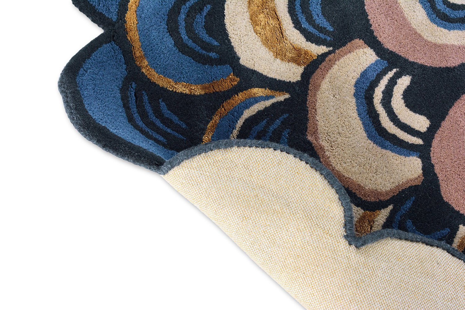 Envelop your space in the allure of the Ted Baker Masquerade Round Rug. A scalloped edge frames waves of colour, transitioning from delicate pink to deep blue, conjuring extra dimensions. This hand-tufted Indian rug boasts a plush 12mm pile and soft wool for textured luxury. Elevate your ambiance with this retro masterpiece.
