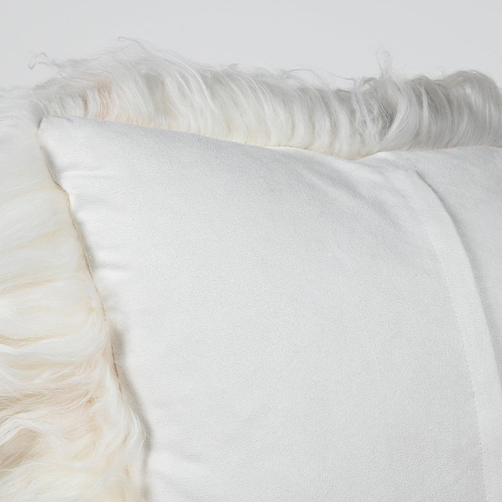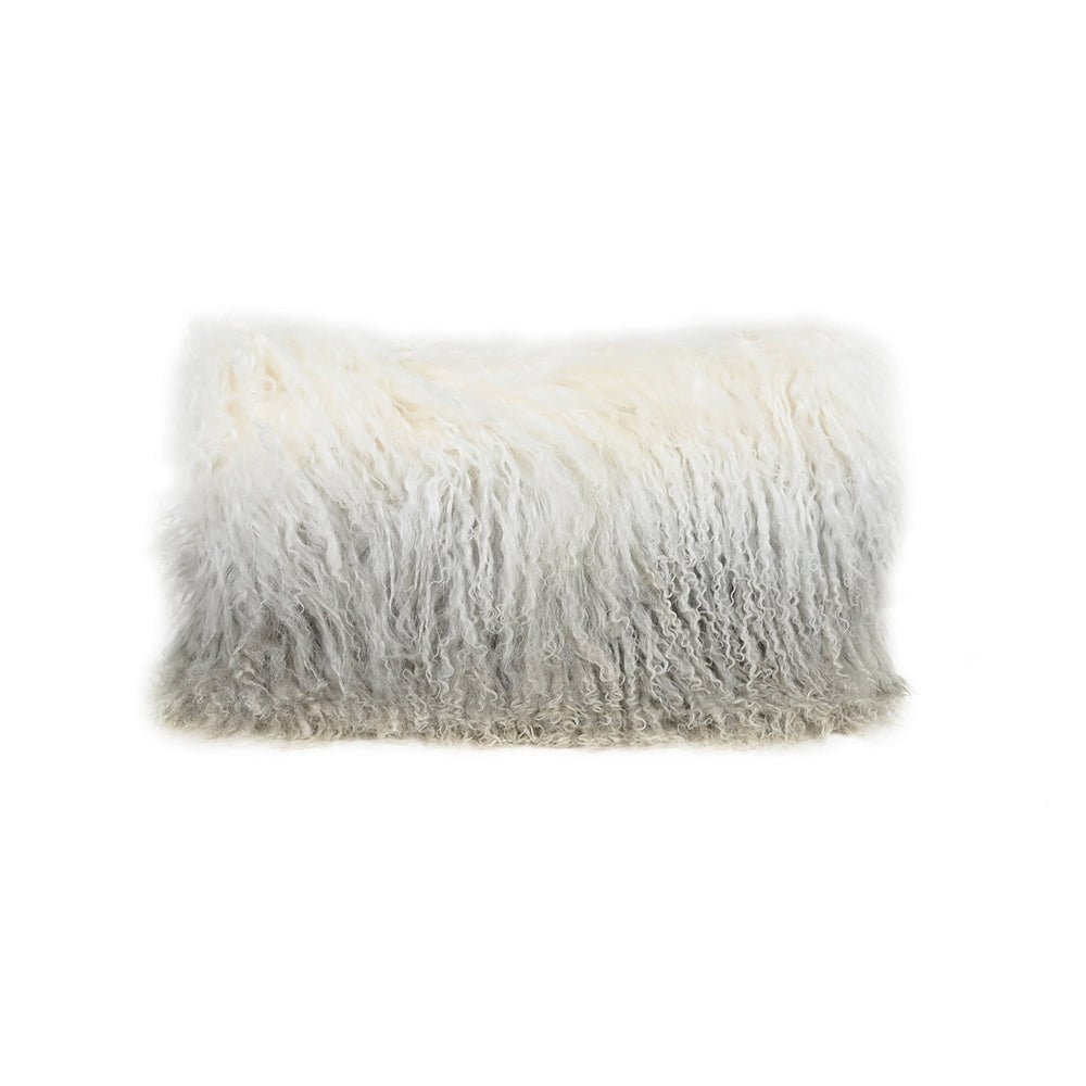 Tibetan Fur Lumbar Cushion - Ivory Grey Ombre