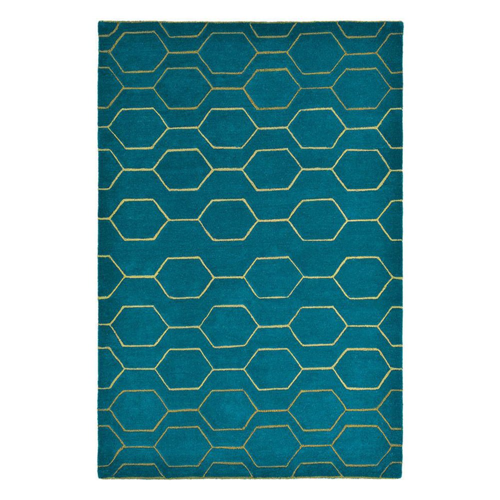 Indulge in opulence with our Wedgwood Arris Rug in Teal. This gorgeous rug exudes luxury, featuring a captivating teal colour in plush wool. The intricate geometric designs, resplendent in shimmering gold, create a beautiful contrast against the rich teal backdrop. Elevate your space with timeless elegance.