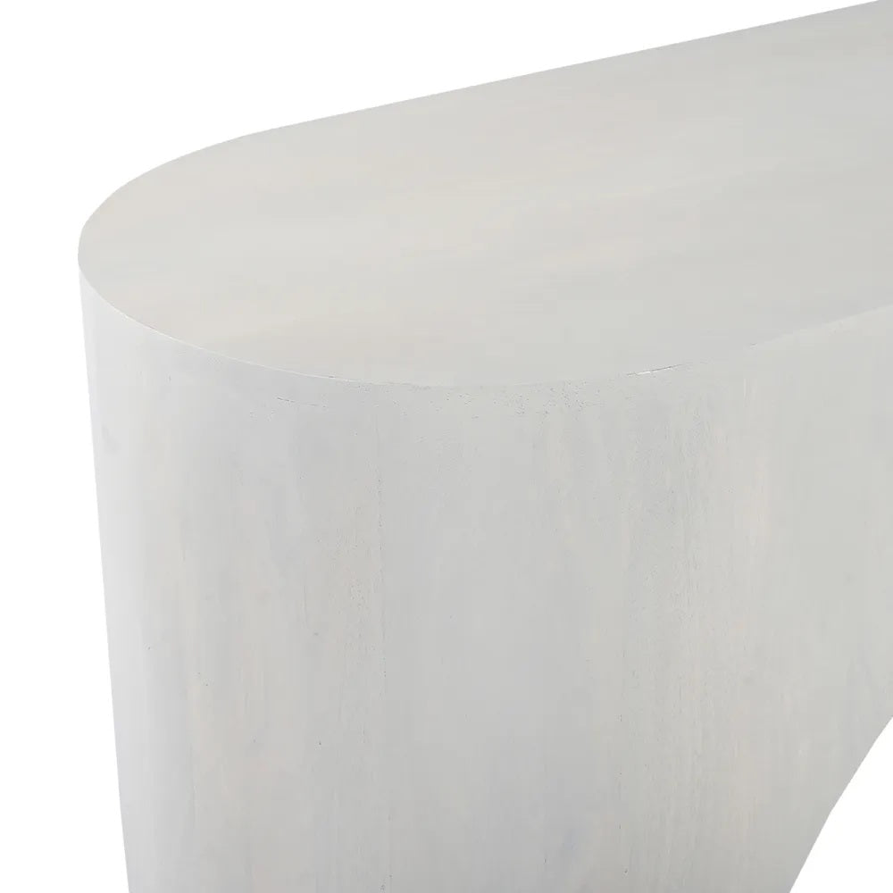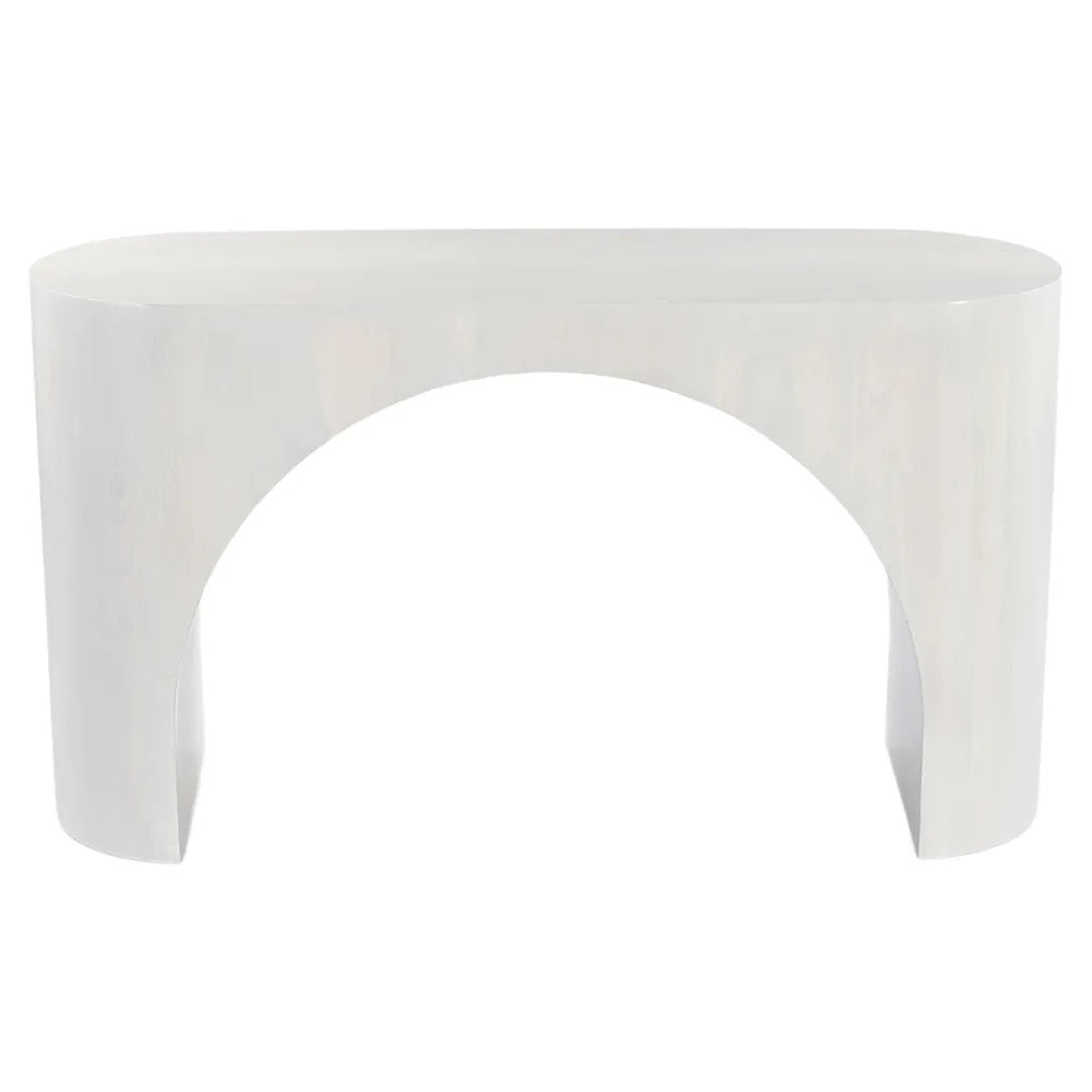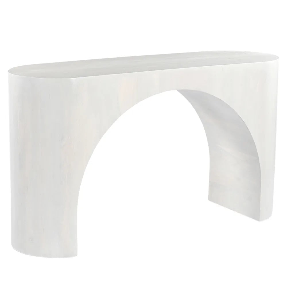 Defined by refined simplicity, the Arch Console Table is a study in quiet sophistication. Part of the Arch collection, it is crafted from solid mango wood in a soft, stained white finish, where a gently curved oval top meets a confident arched base. The result is sculptural yet restrained, bringing natural texture, balance, and an enduring sense of elegance to the spaces it inhabits.