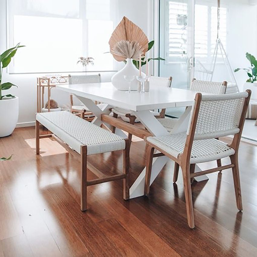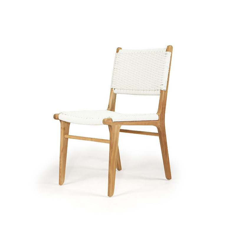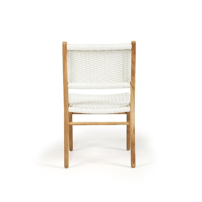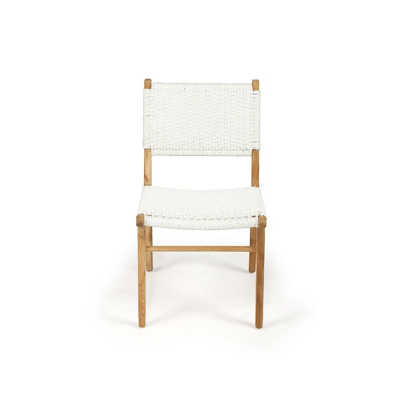 Introducing the Zen Dining Chair in pristine white, an epitome of refined elegance designed to elevate both indoor and outdoor dining experiences. Crafted with an exquisite teak wood base, this chair resonates with the timeless allure of Hamptons or Coastal style interiors, seamlessly blending sophistication with a touch of the nautical.