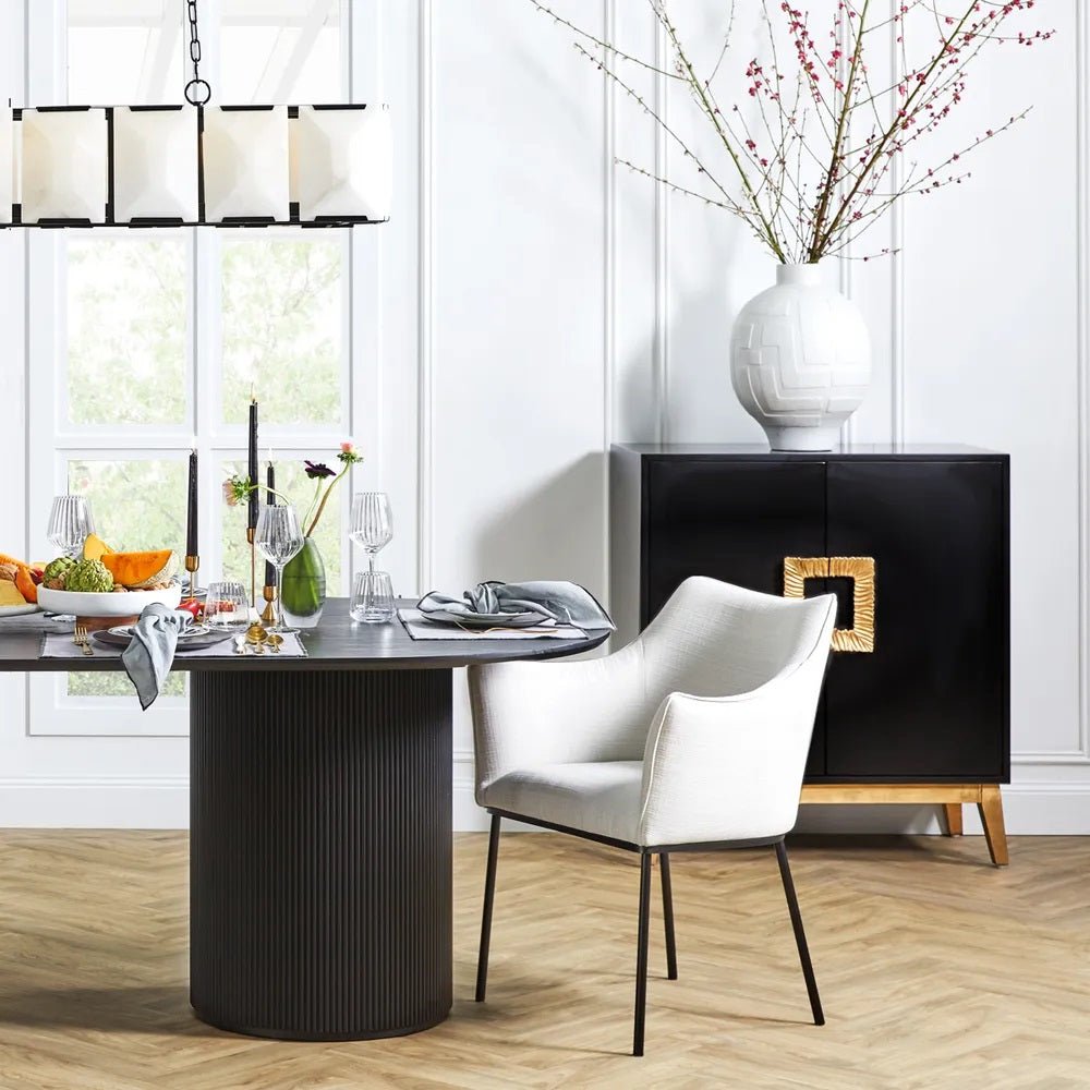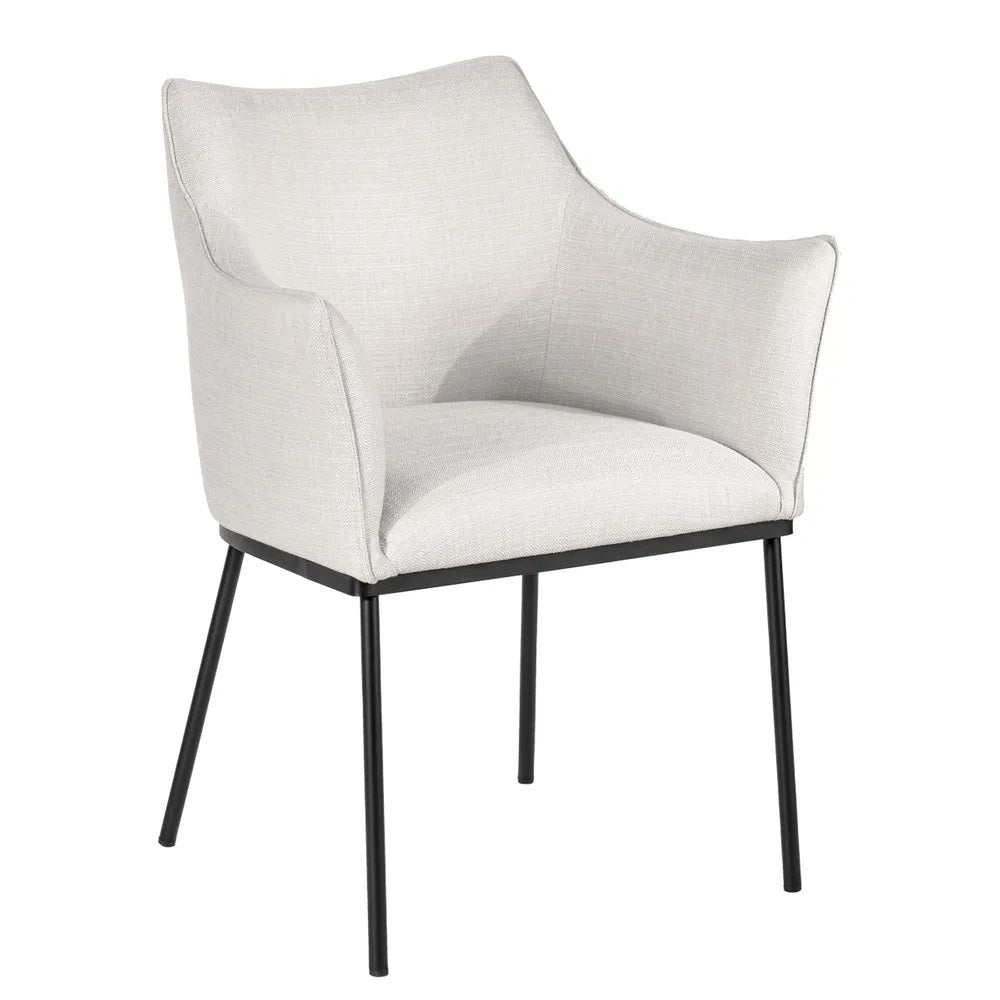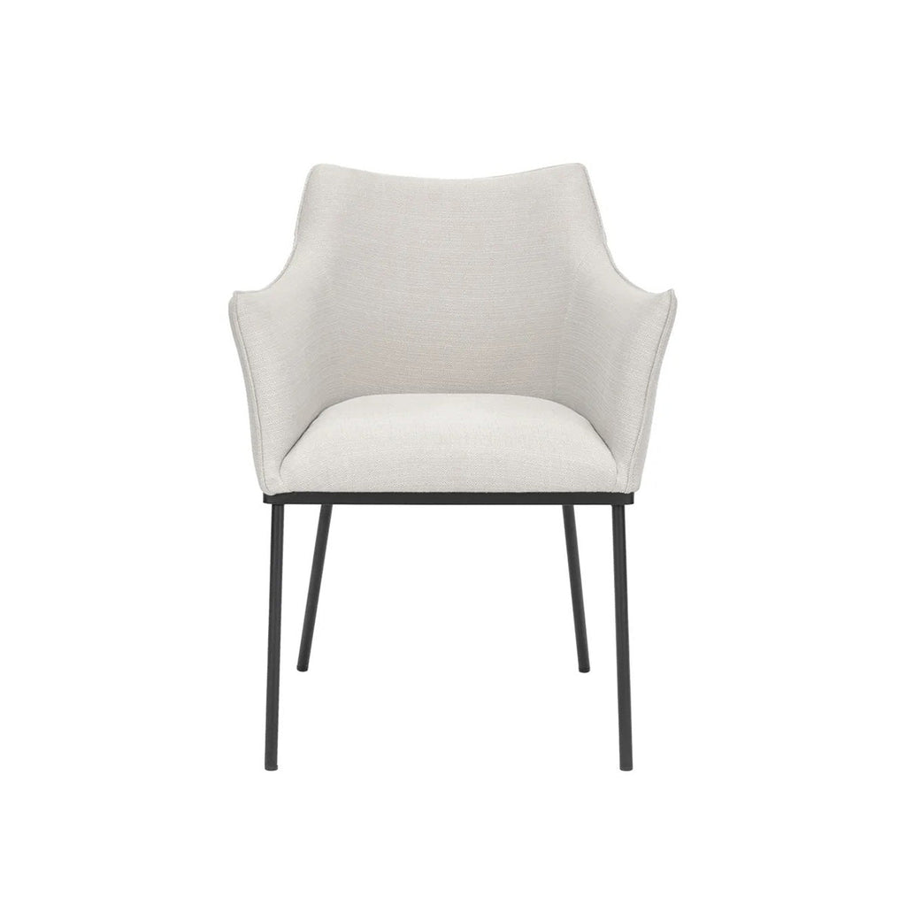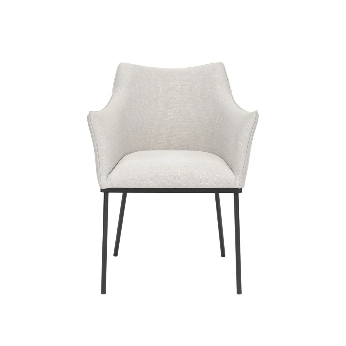 Inspired by the Shibui philosophy, the Zoey Dining Chair combines simplicity and elegance. Its design emphasizes minimalism and sophistication, with every detail finely crafted for aesthetic appeal. Set on a sleek, matte black steel base, the chair features contoured seating for comfort, available in natural and black linen-like fabric to enhance any upscale décor.
